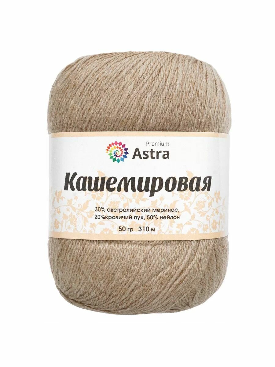 Пряжа для вязания Astra Premium 'Кашемировая' (Cashmere), 50г, 310м (20% кроличий пух, 30% австралийский меринос, 50% нейлон) + нить 20г (814 бежевый)