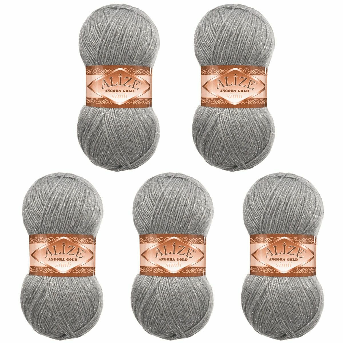 Пряжа для вязания ALIZE Angora Gold Simli Ализе Ангора Голд: 21 (серый), 4 шт 500 м 100 г, 5% металлик, 20% шерсть, 75% акрил
