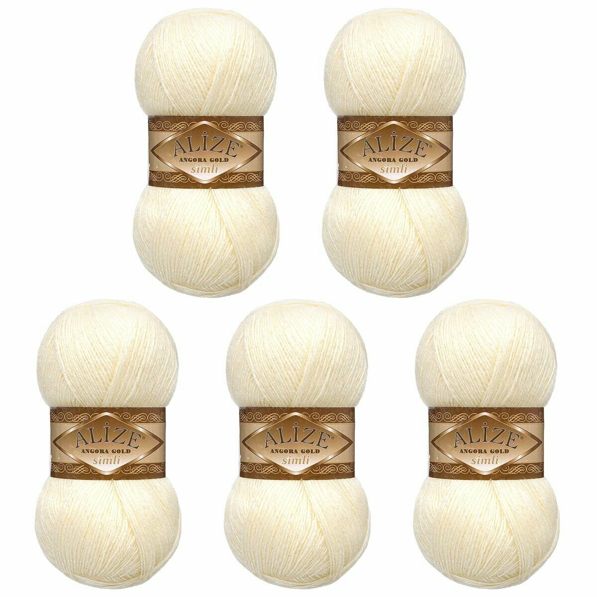 Пряжа для вязания ALIZE 'Angora Gold Simli', 100г, 500м (шерсть, металлик, акрил) (1 кремовый), 5 мотков