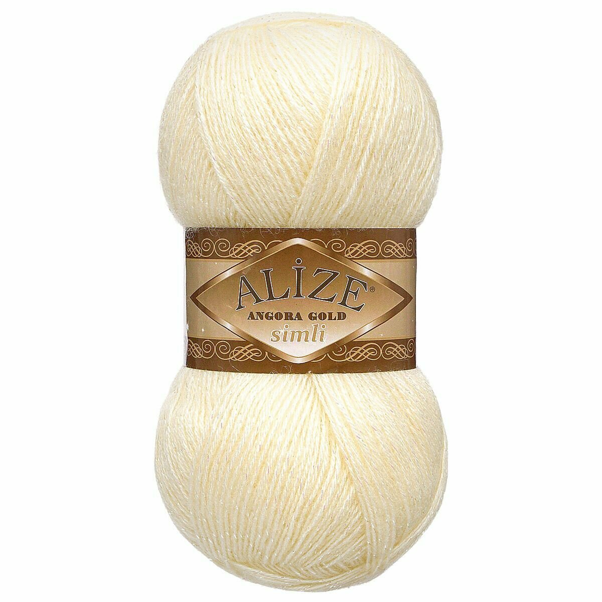 Пряжа для вязания ALIZE 'Angora Gold Simli', 100г, 500м (20% шерсть, 5% металлик, 75% акрил) (506 молочно-бежевый), 5 мотков