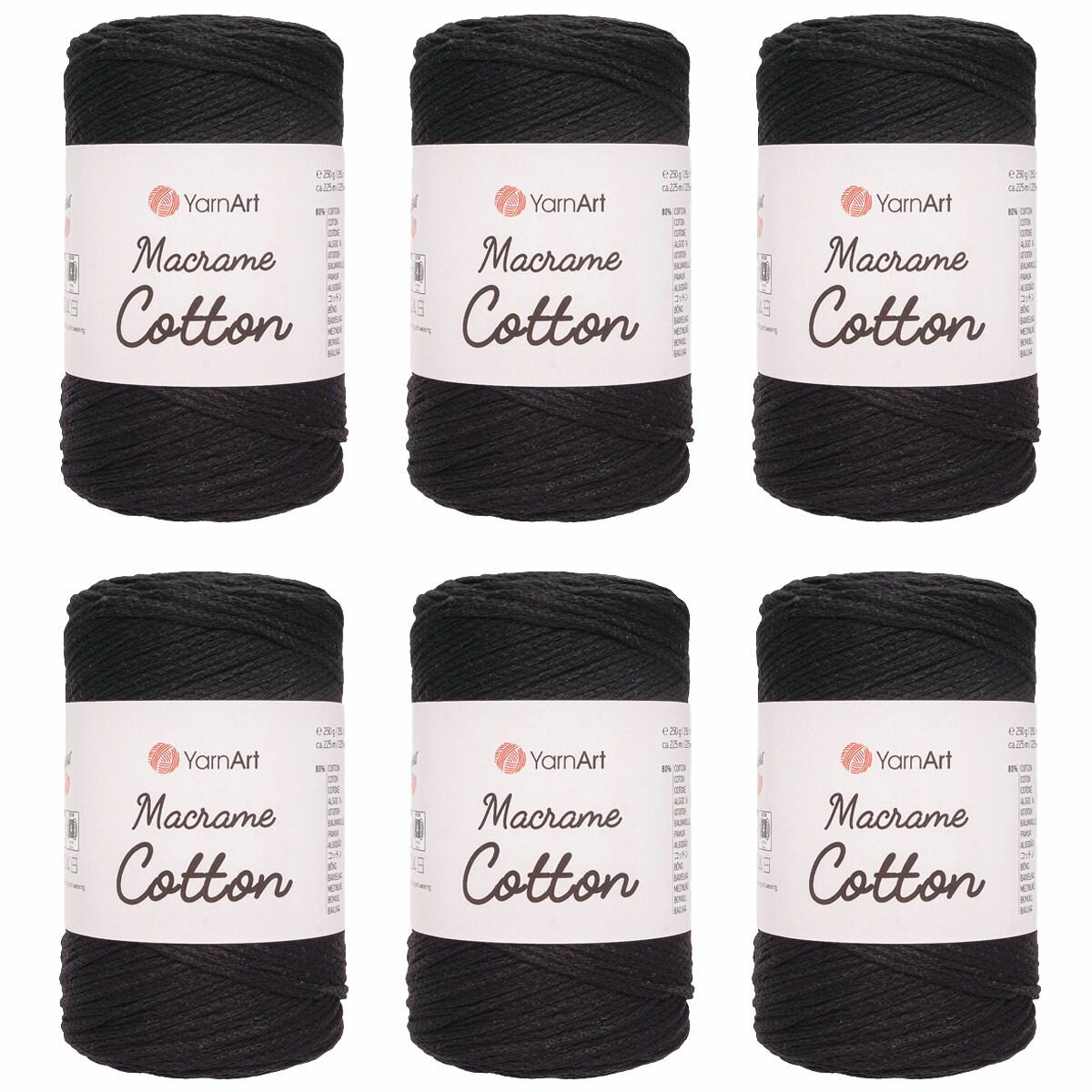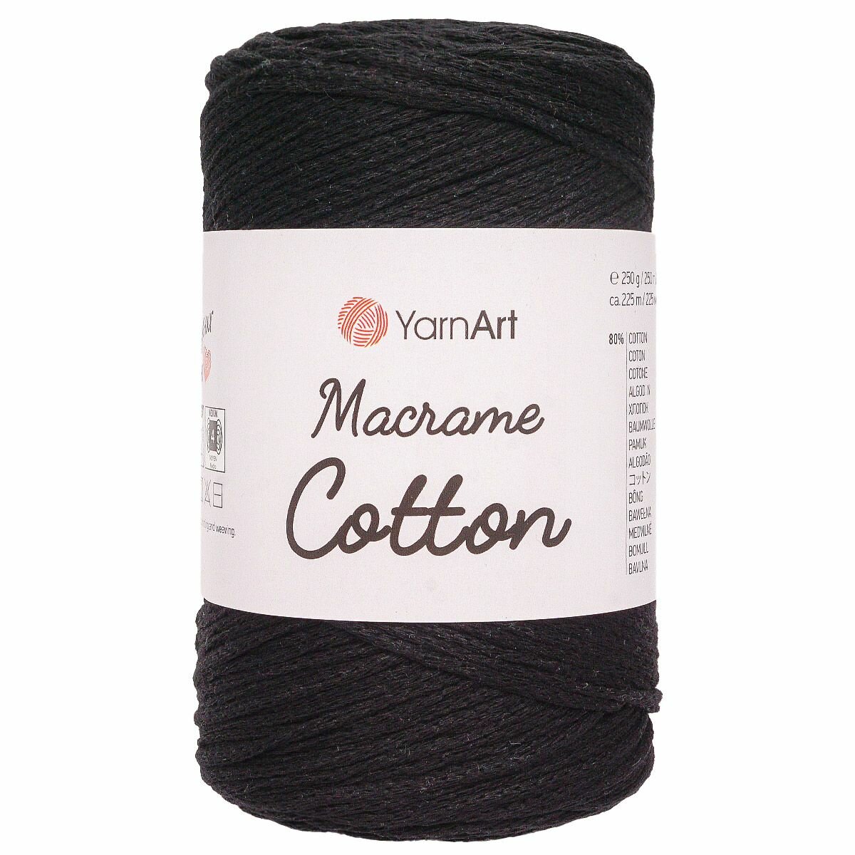 Купить Пряжа для вязания YarnArt 'Macrame Cotton' 250г, 225м (80% хлопок, 20% полиэстер) (750 черный), 4 мотка