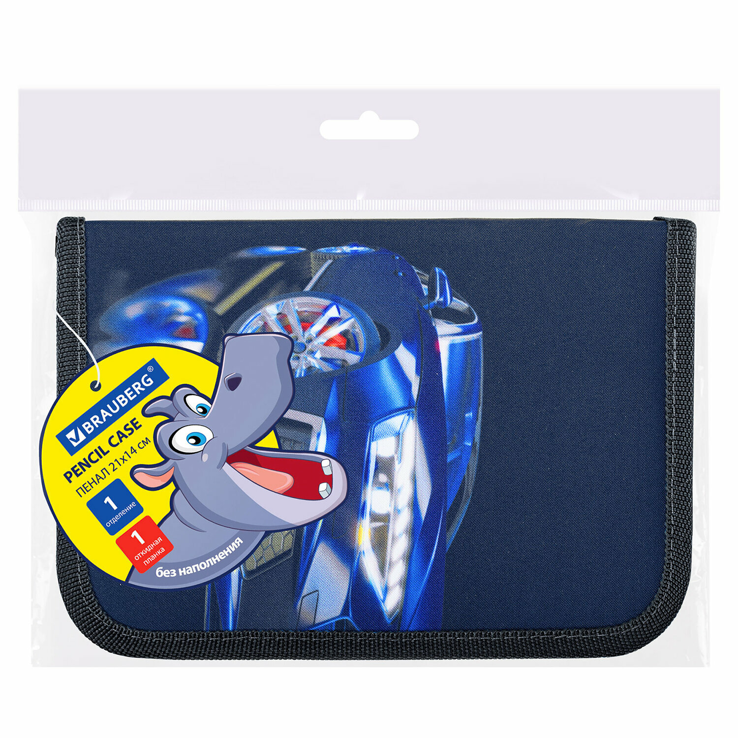 Пенал BRAUBERG, 1 отделение, 1 откидная планка, полиэстер, 21х14 см, "Super car", 272325
