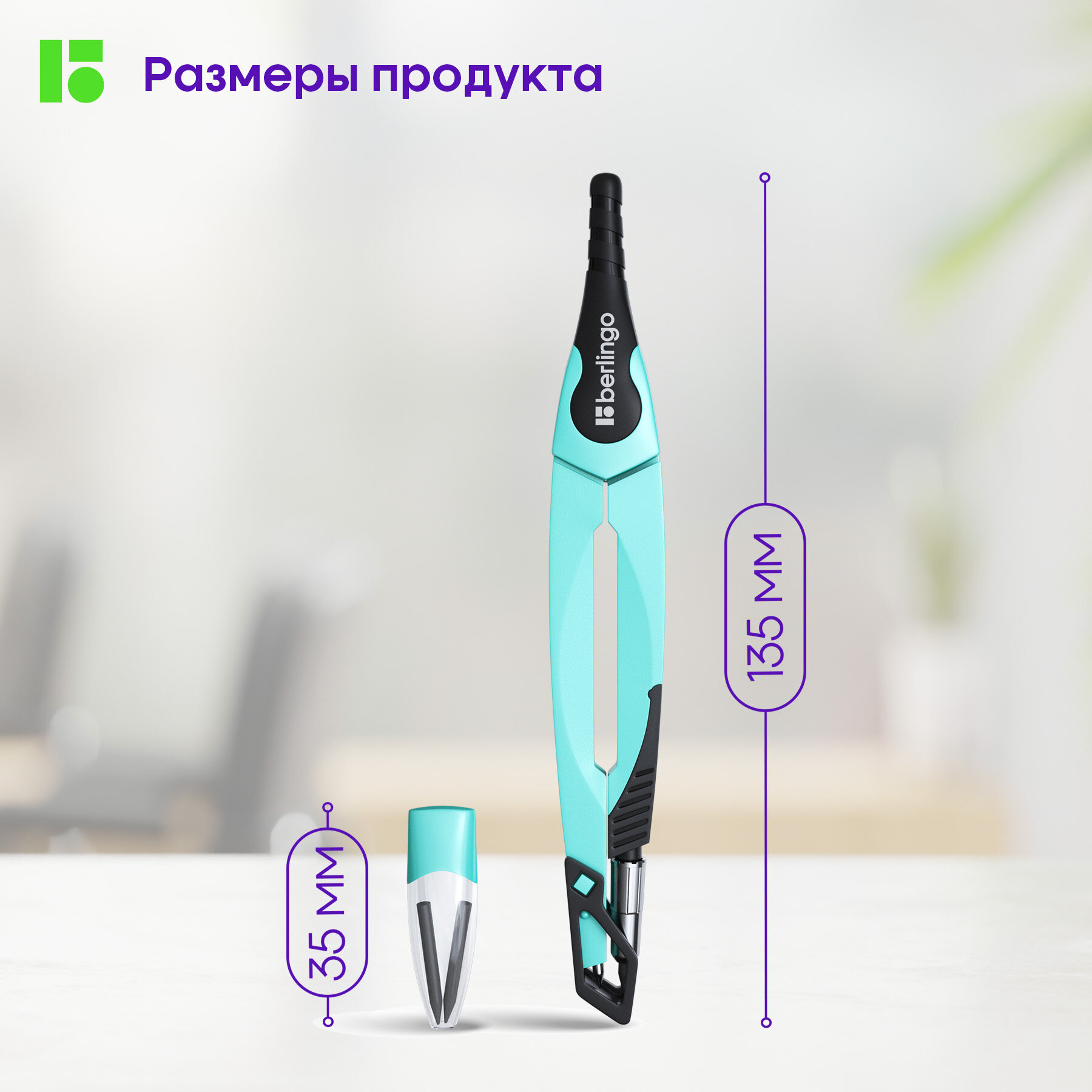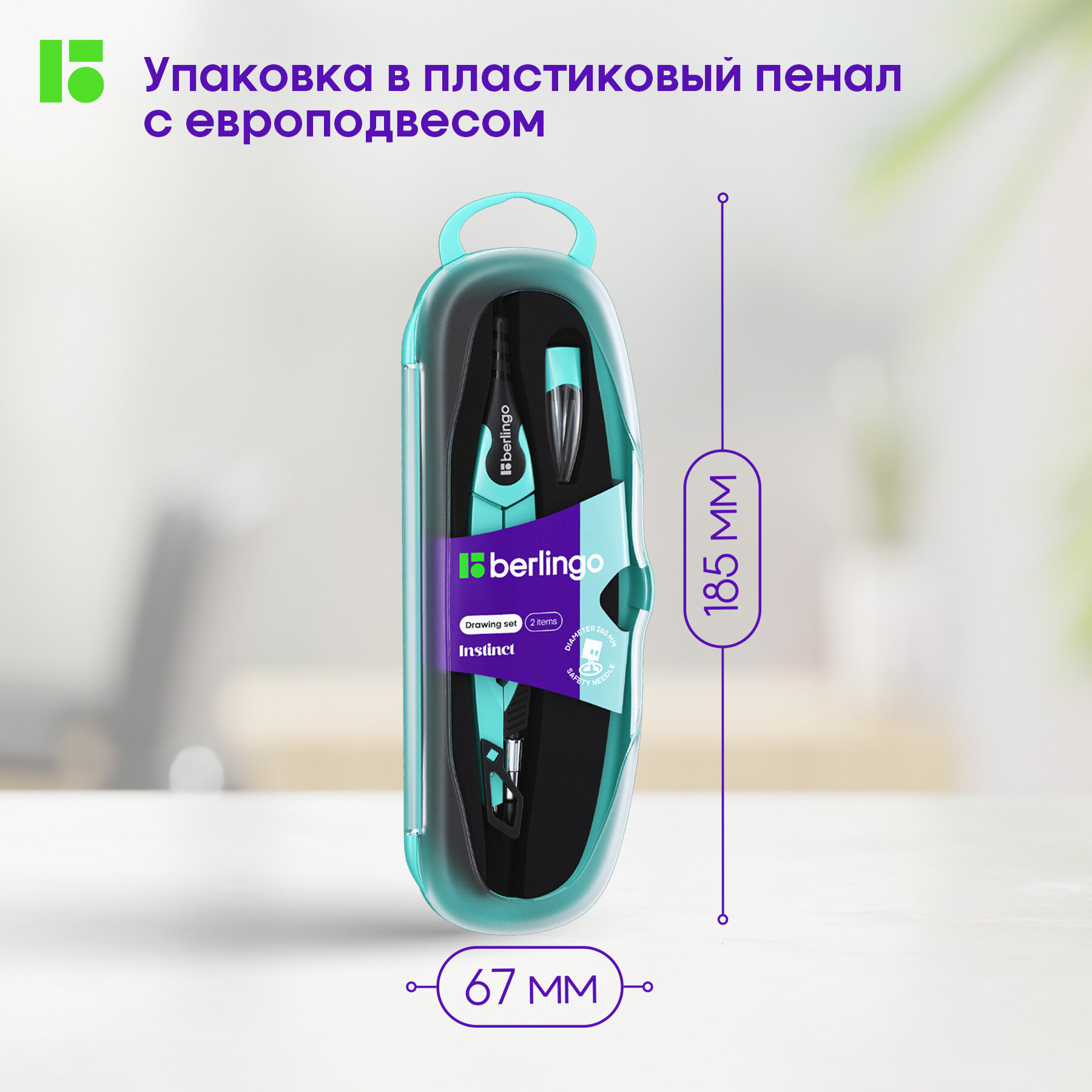 Готовальня Berlingo "Instinct", 2 предмета, циркуль 135мм, мята, пластиковый футляр