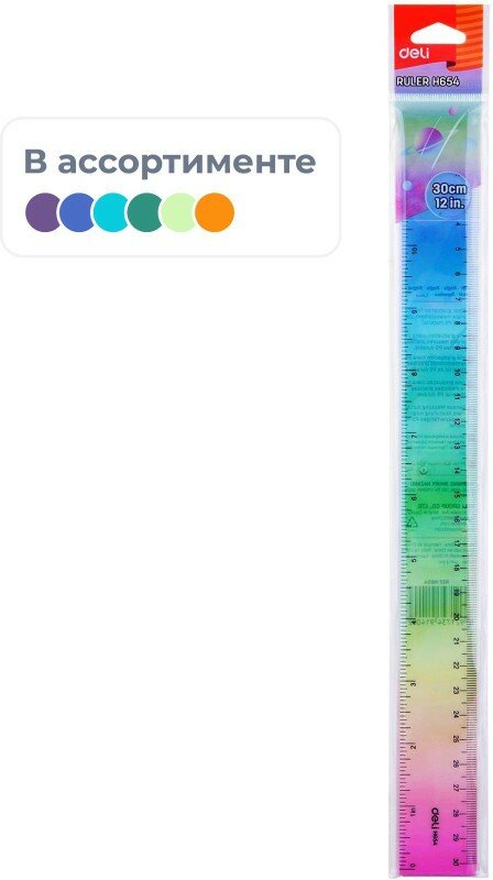 | Комплектация | Линейка Deli EH654 / пластик / 30см / ассорти |