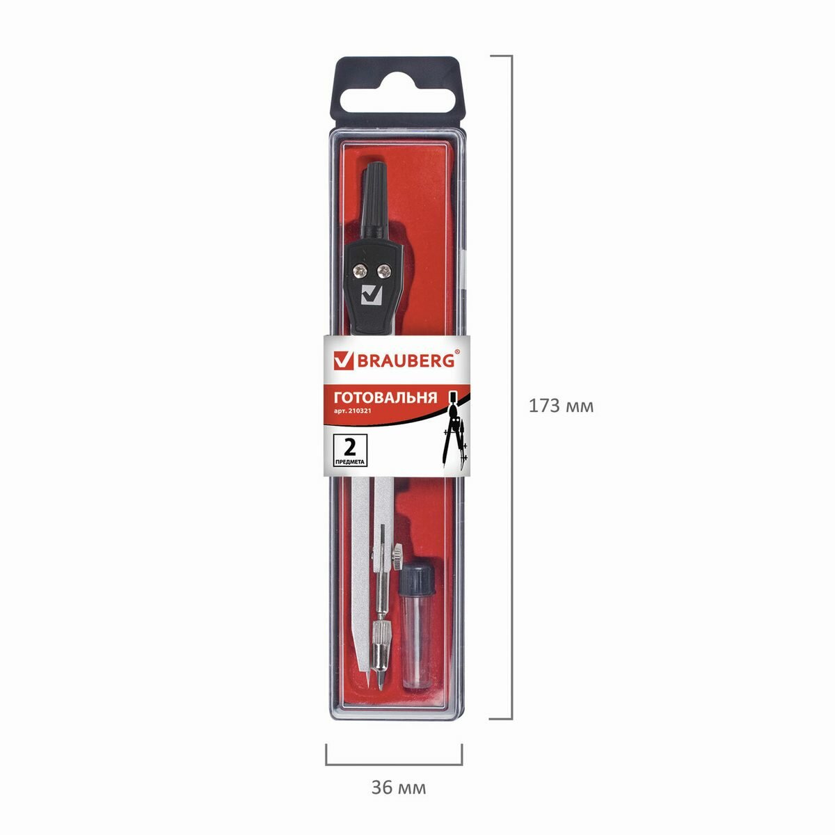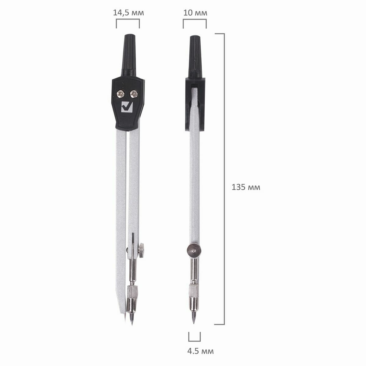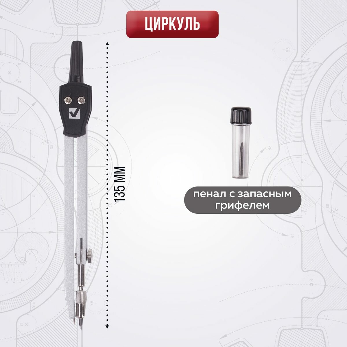 Готовальня 2 предмета: циркуль 135 мм для черчения+грифель Brauberg "Architect" школьный универсальный, 210321