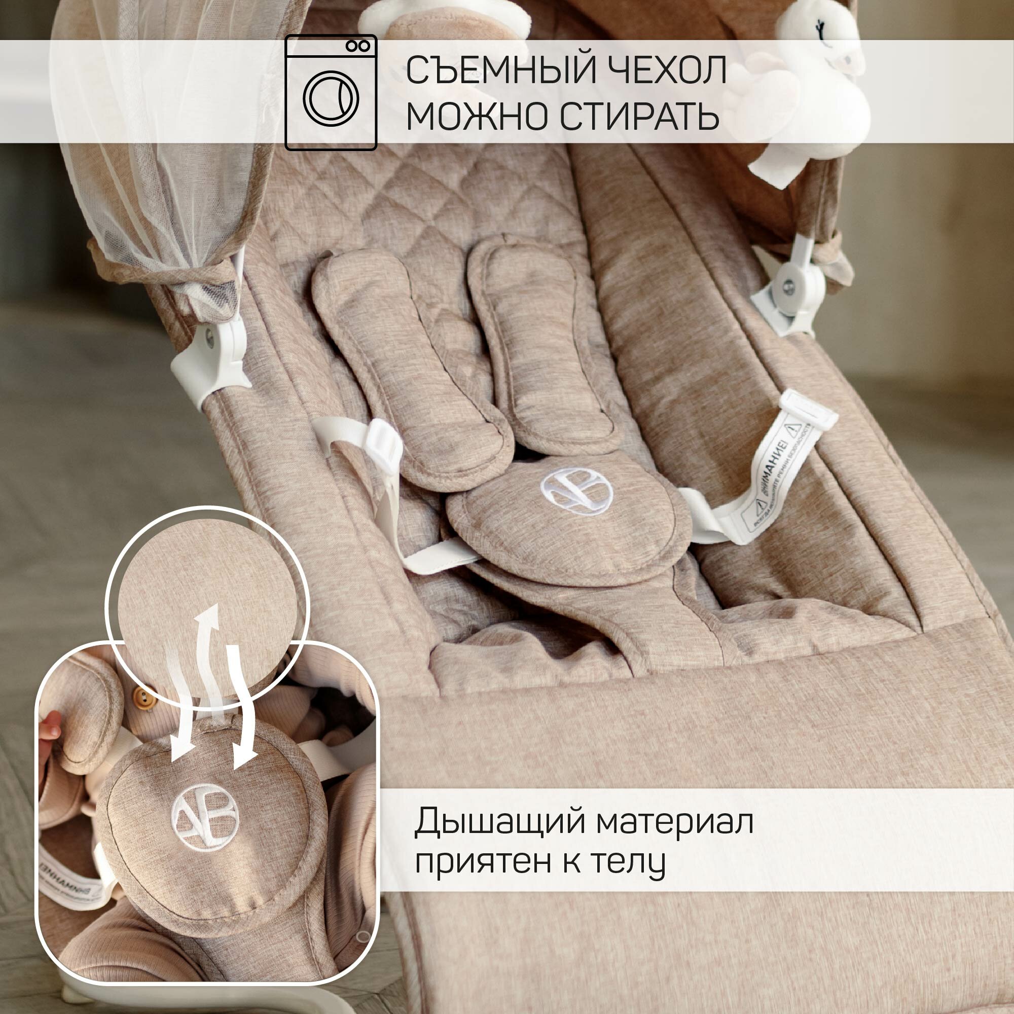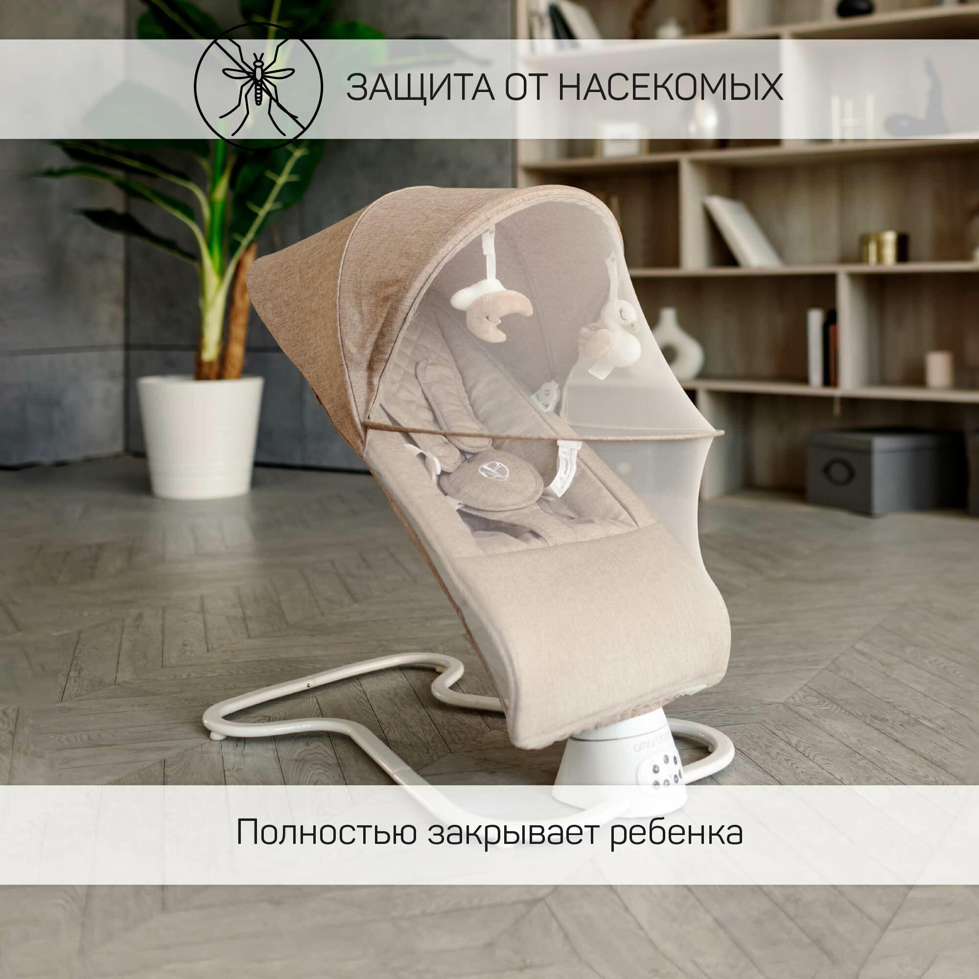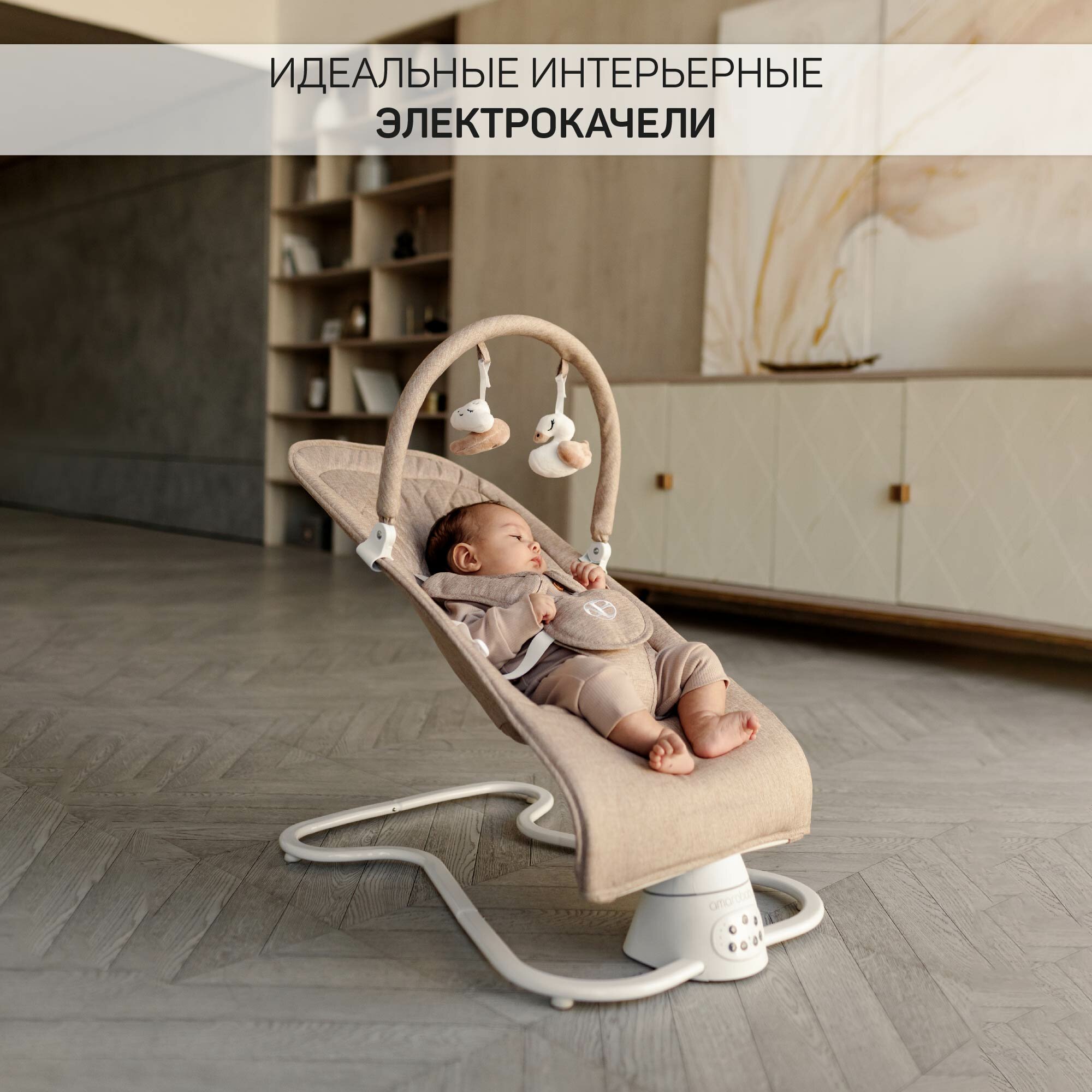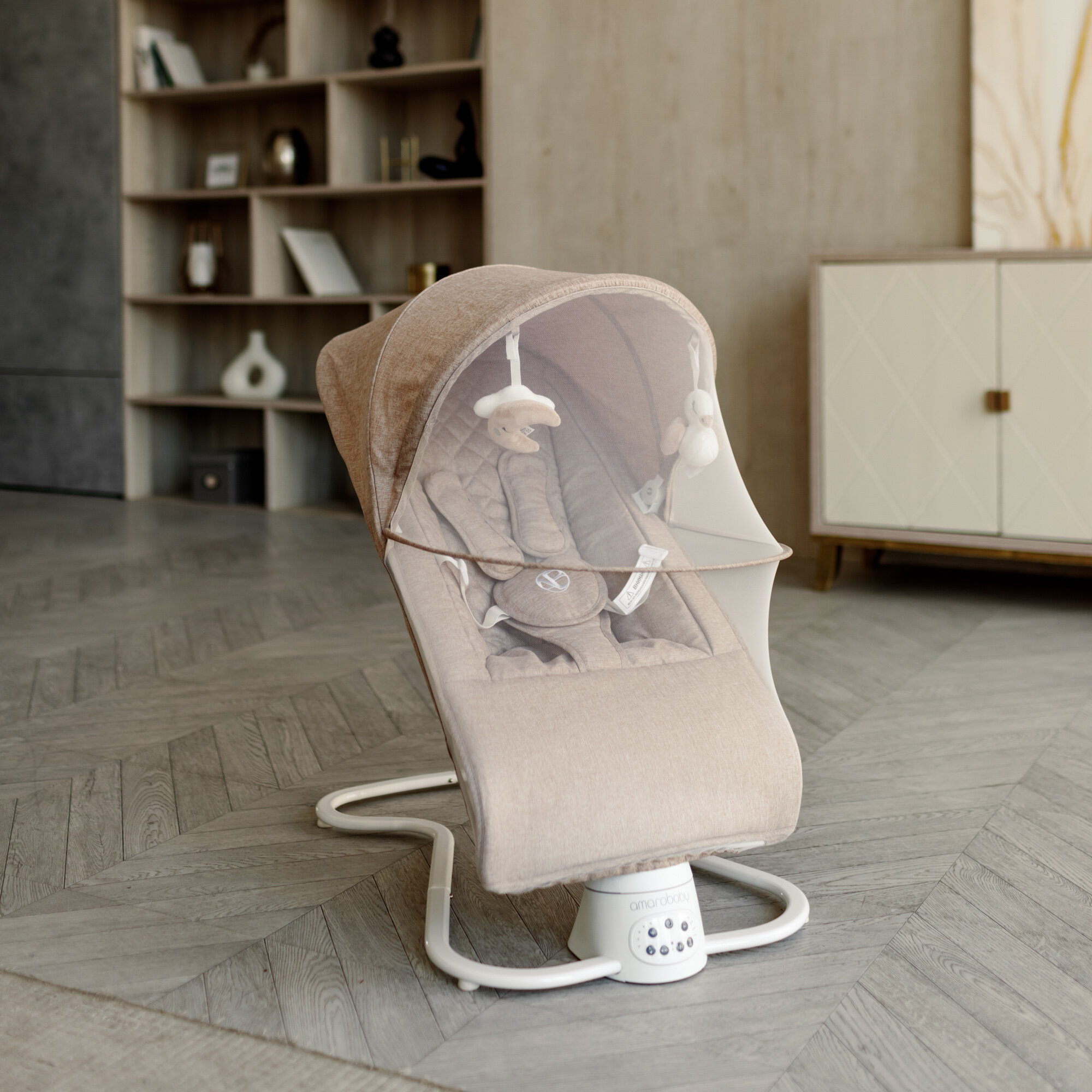 Электронные качели детские AMAROBABY HAPPY SWING, бежевый интересное: