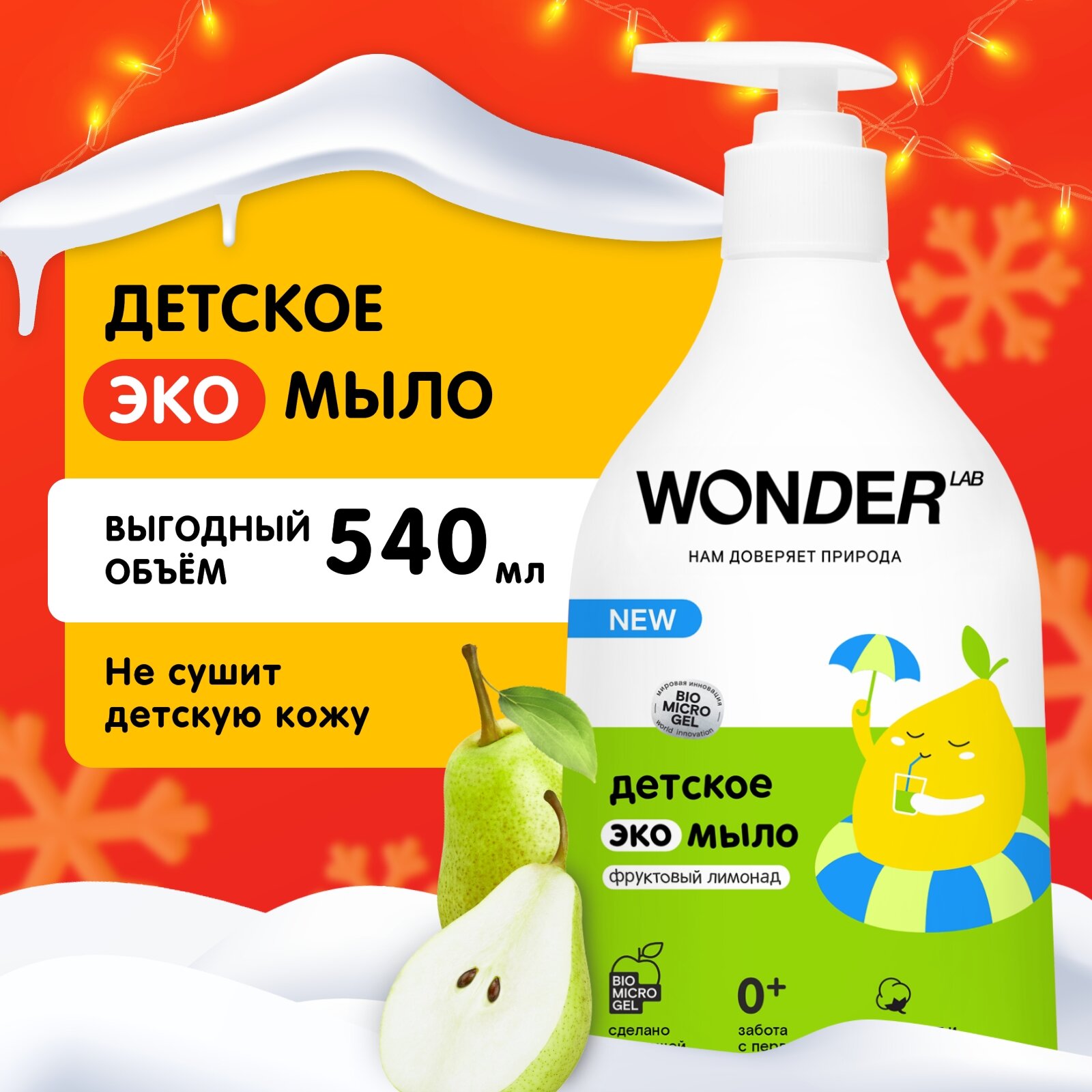 Детское жидкое мыло 0 + Wonder Lab с ароматом фруктового лимонада интересное: