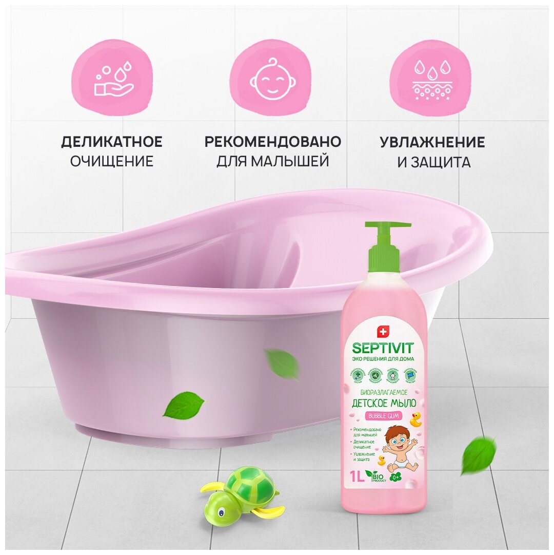 Мыло жидкое детское гипоаллергенное 1 л, SEPTIVIT "Bubble gum", биоразлагаемое, дозатор