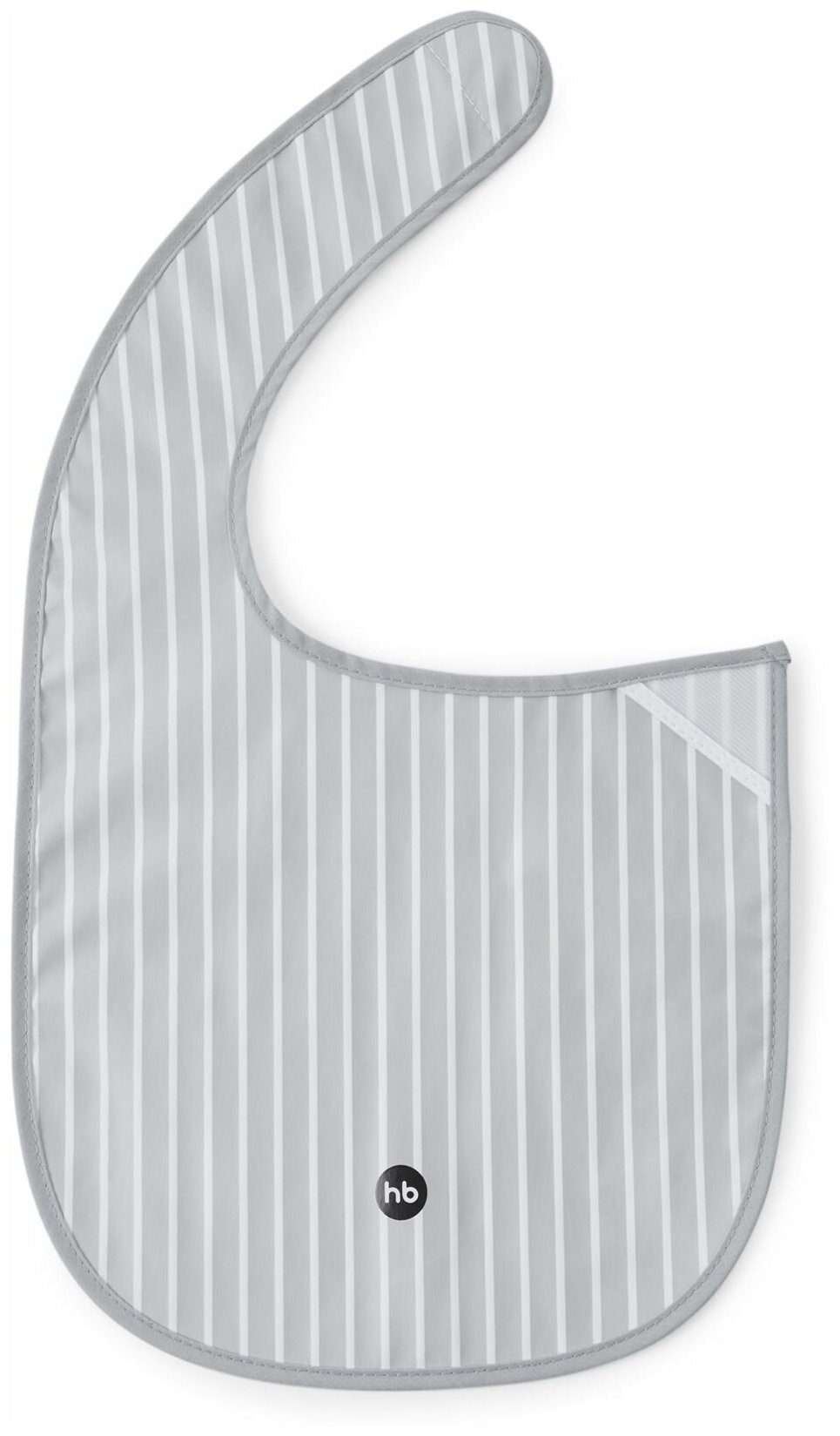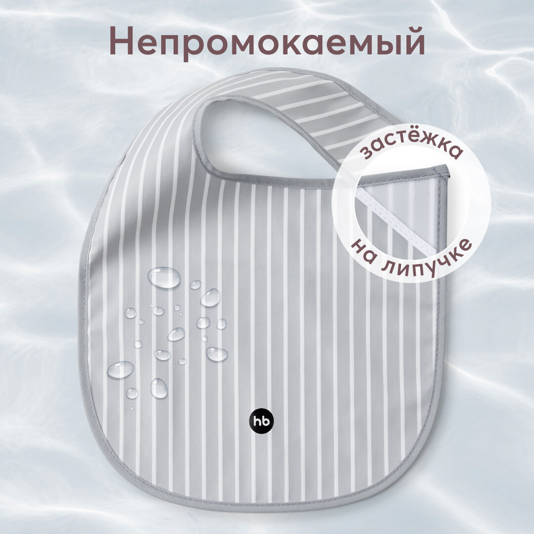 Купить 16009, Нагрудник для кормления Happy Baby Waterproof Baby Bib X1, слюнявчик, водонепроницаемый, серый в полоску