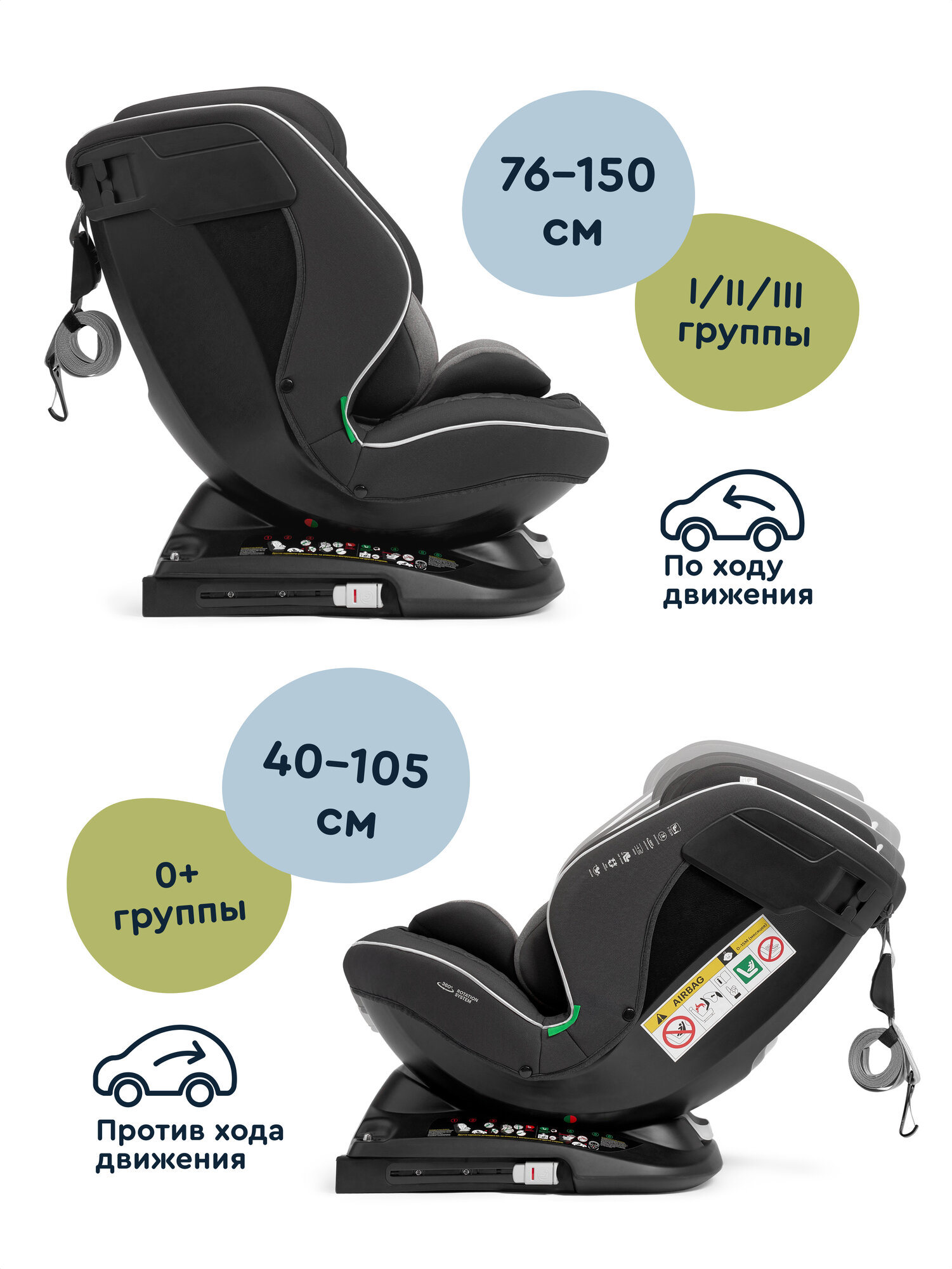 СохранитьАвтокресло JUNION Julsi i-size группа 0+/1/2/3 (0-36 кг), 0-12 лет, 40-150 см, 360°, Isofix, чёрный интересное: