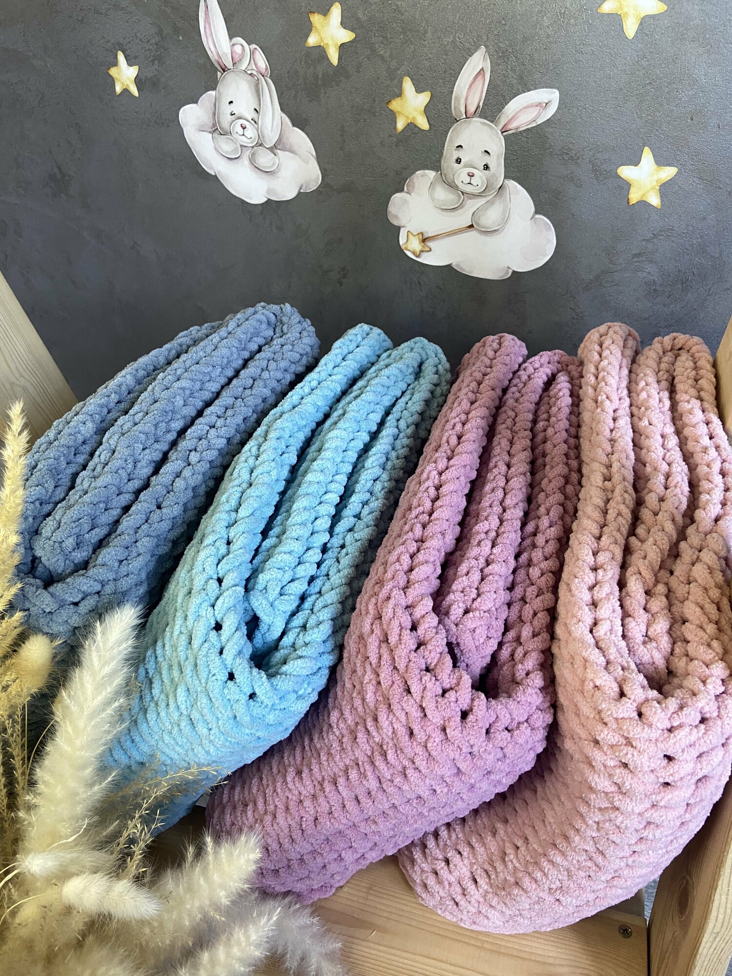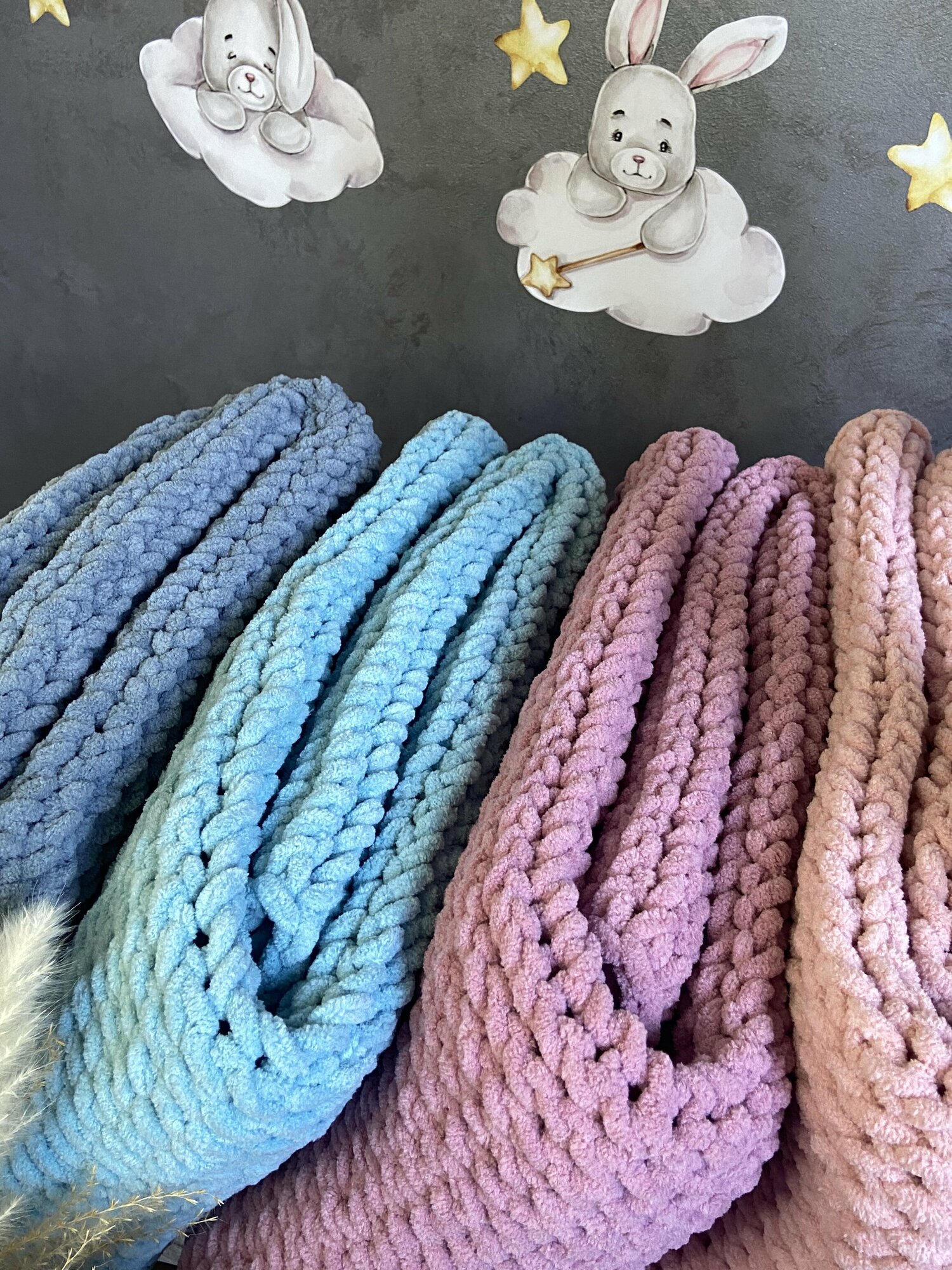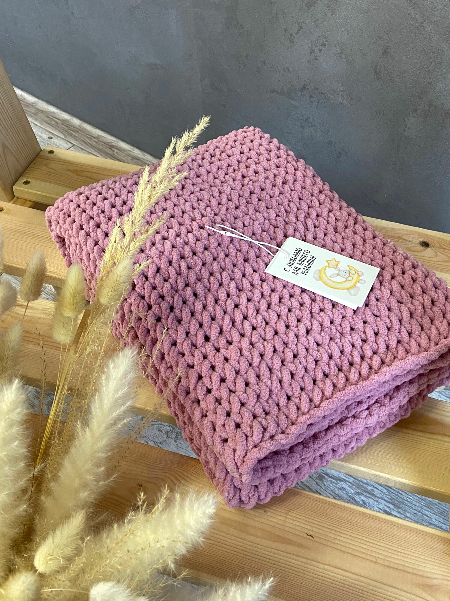 Купить Плед вязаный, плюшевый из Alize Puffy / Ализе Пуффи 80*130