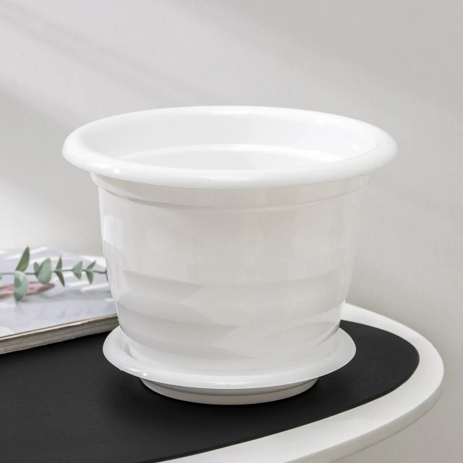 Горшок цветочный, Афина, с поддоном, 5,5 литров, белый