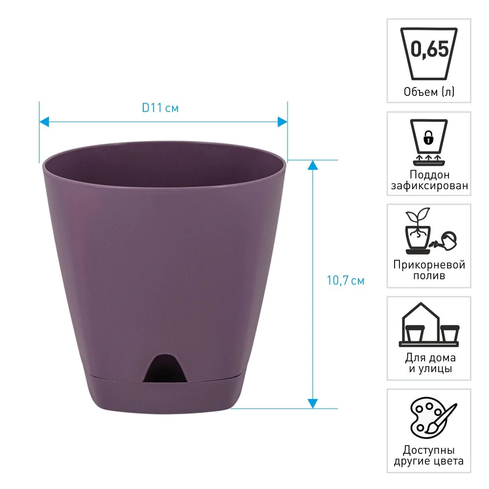 горшок с прикорневым поливом Amsterdam 0,65л d11см h10,7см морозная слива пластик