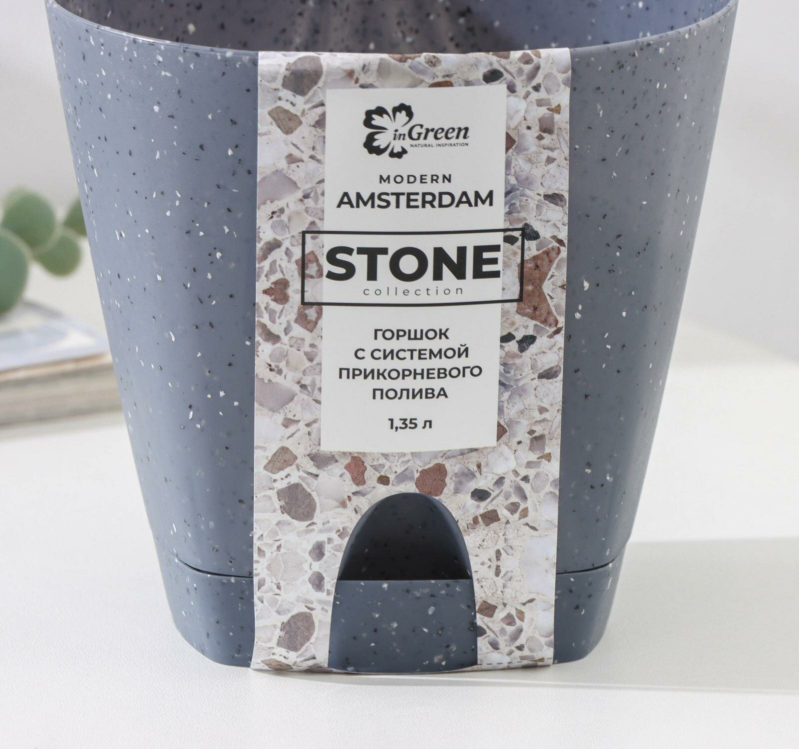 Горшок Amsterdam для растений и цветов с поддоном 1,35 л, (темный камень) 6299