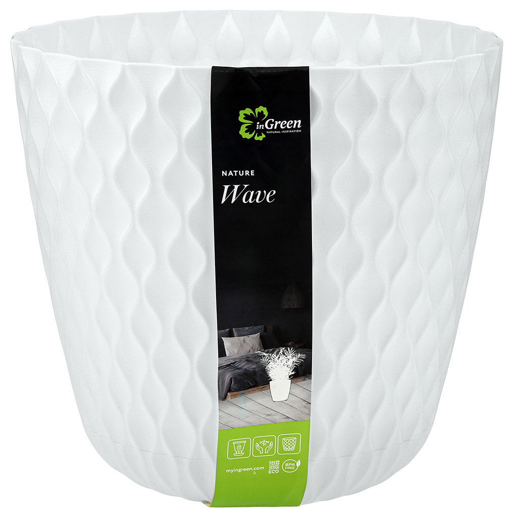 Горшок для цветов InGreen Wave с дрен. сеткой и съемным поддоном 2,5л D175мм белоснежный жасмин