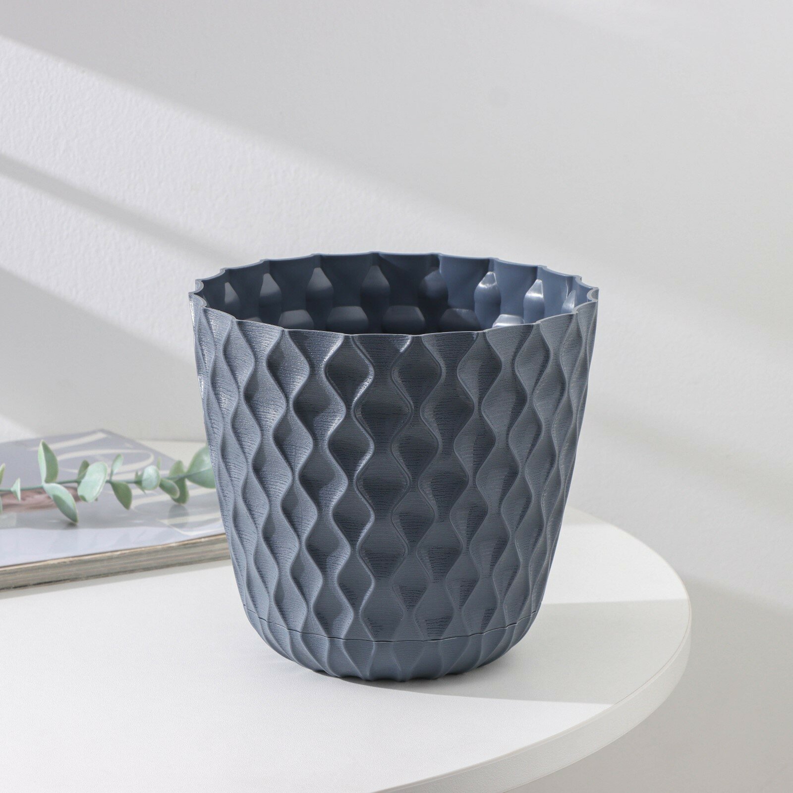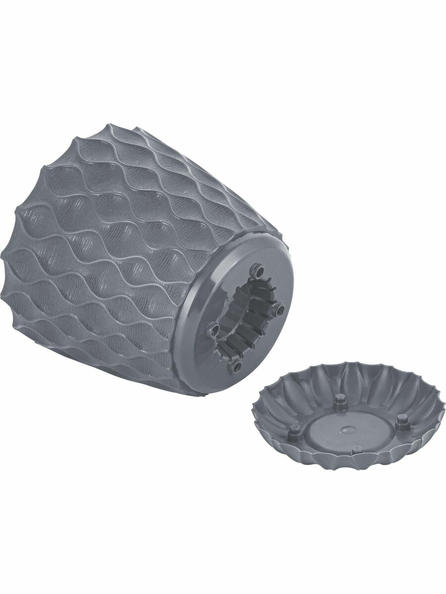 Горшок для цветов пластиковый 2,5л d-17,5см «Wave» с дренажной сеткой и съемным поддоном, вулканический серый
