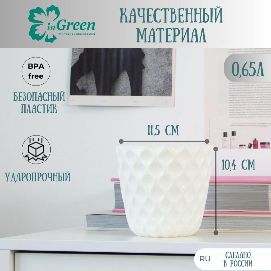 Купить Горшок Ingreen Wave для цветов D115мм 0,65л с дренажной сетк./съемн. поддон белоснежный жасмин (IG650010048)