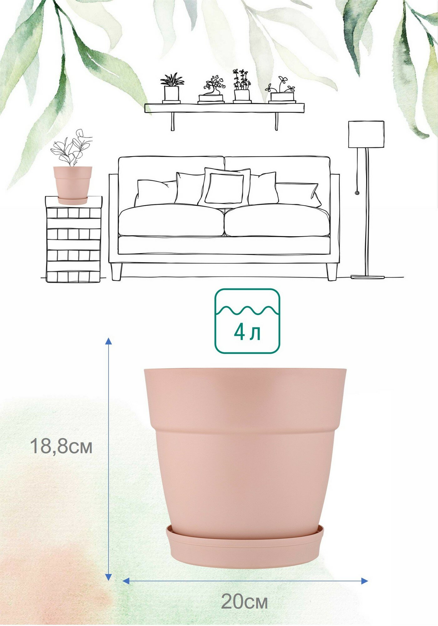 Горшок для цветов InGreen Villa de Fiori с фиксируемым поддоном 4л ,D200мм ,молочный шоколад ,20х20х18,8 см