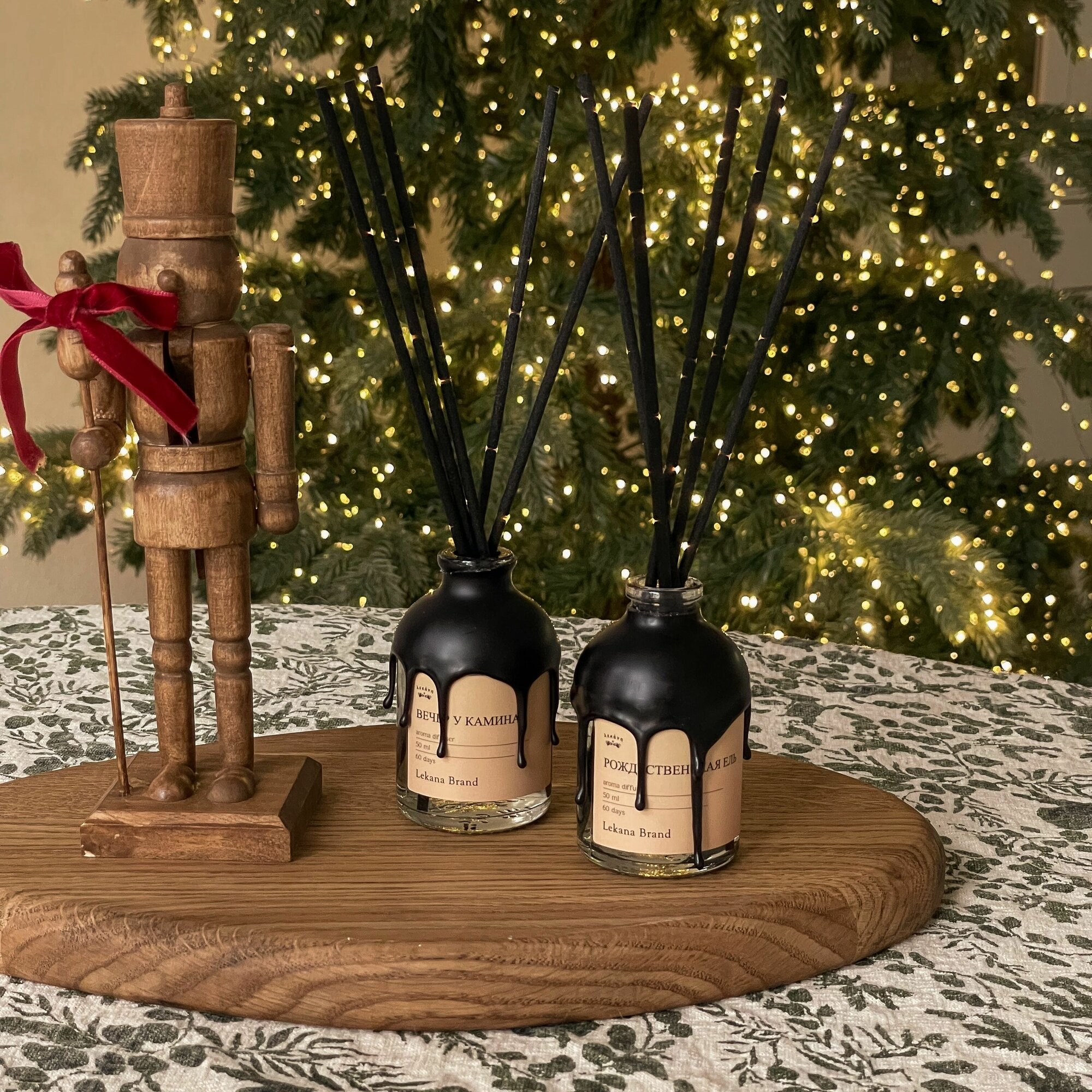 Ароматический диффузор для дома,Набор Вечер у камина + Рождественская ель, 2*50 мл, Ароматизатор для офиса с палочками пахучка