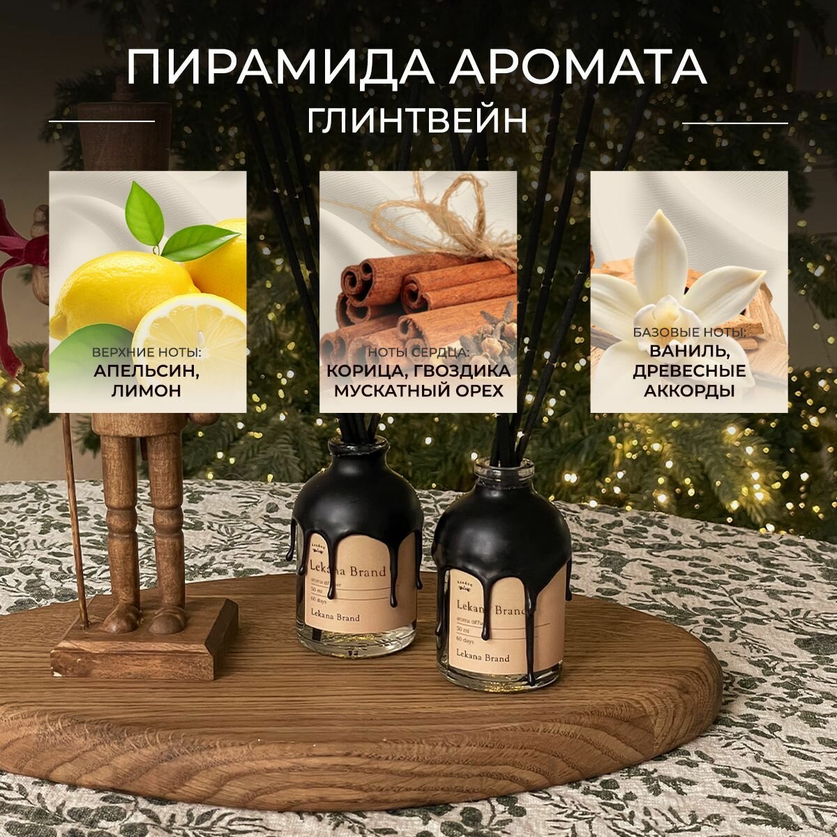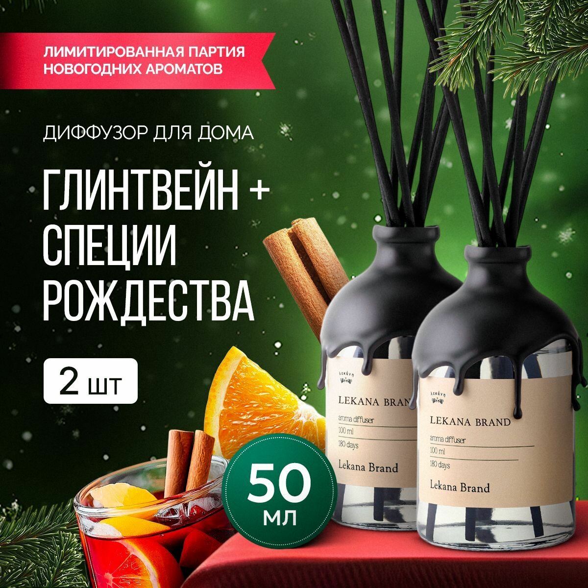 Купить Ароматический диффузор для дома, набор Глинтвейн + Специи рождества, 2*50 мл, Ароматизатор для офиса с палочками пахучка