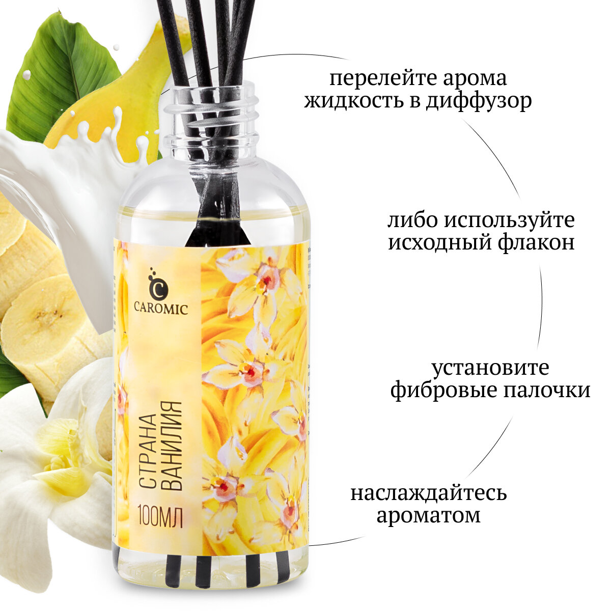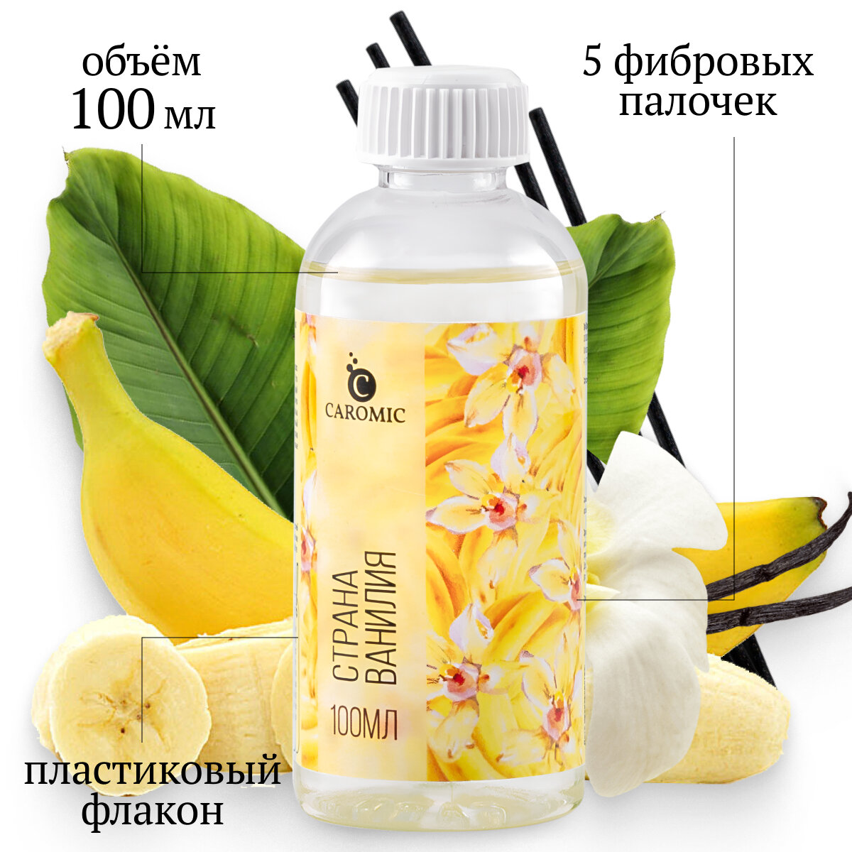 Ароматический диффузор Страна ванилия Ваниль и Банан Ароматизатор для дома и офиса с палочками CAROMIC 100 мл