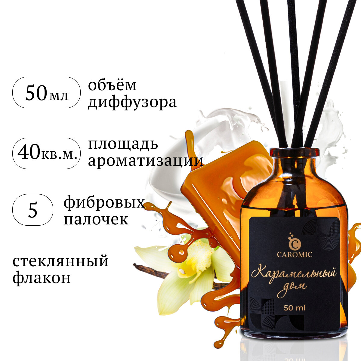 Купить Ароматический диффузор Карамельный дом Ароматизатор для дома и офиса с палочками CAROMIC 50 мл
