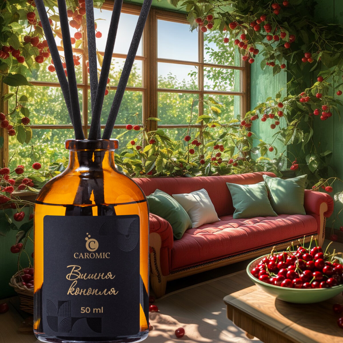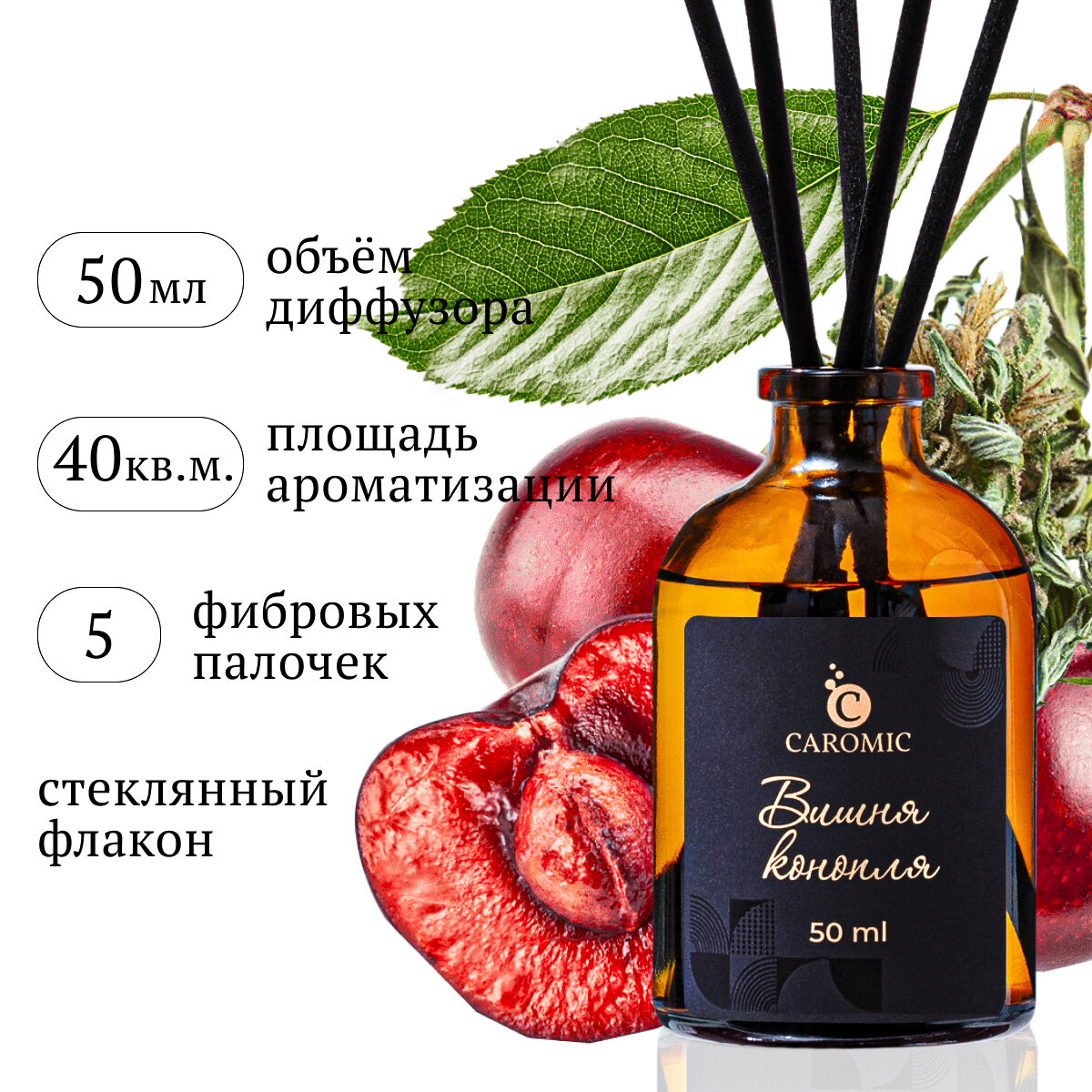 Купить Ароматический диффузор Вишня конопля Ароматизатор для дома и офиса с палочками CAROMIC 50 мл