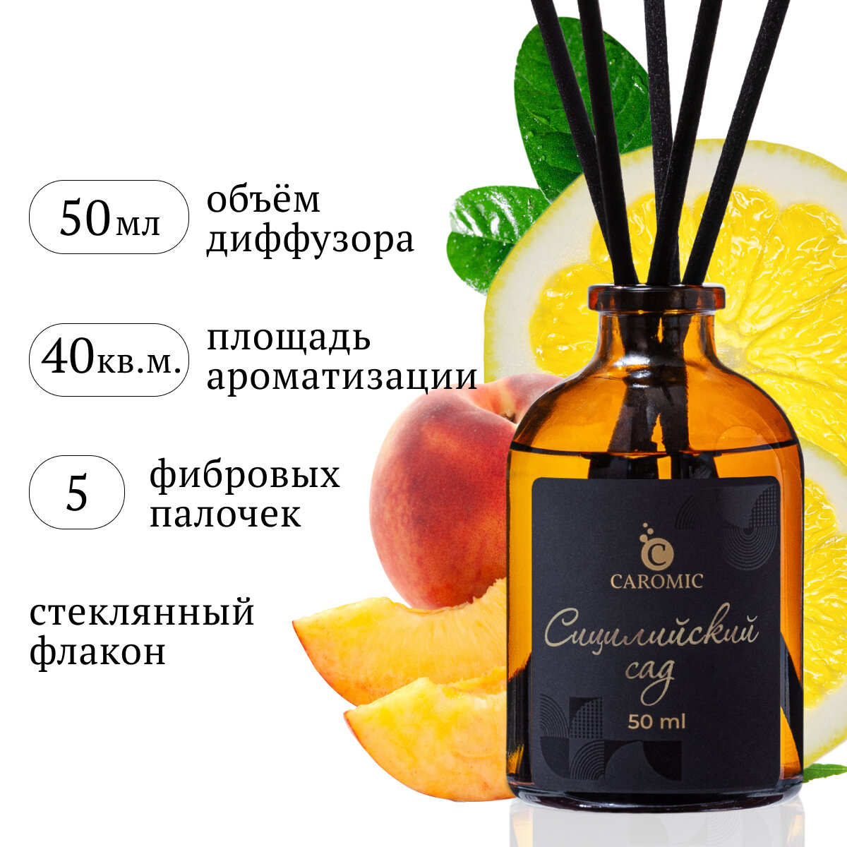 Купить Ароматический диффузор Сицилийский сад Ароматизатор для дома и офиса с палочками CAROMIC 50 мл
