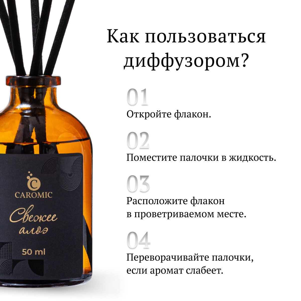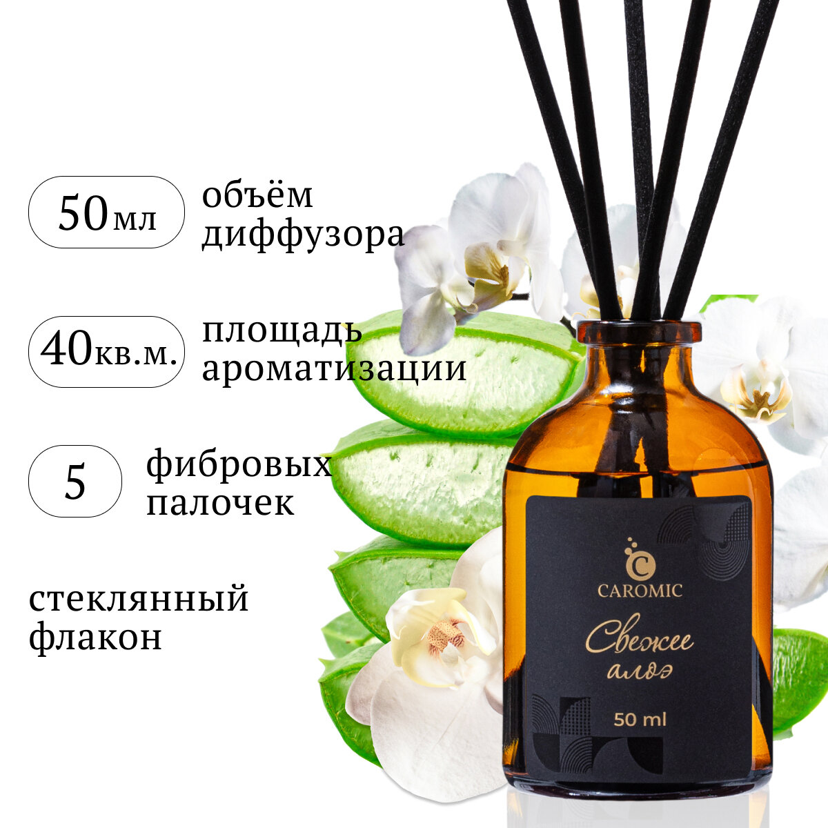 Купить Ароматический диффузор Свежее алоэ Ароматизатор для дома и офиса с палочками CAROMIC 50 мл