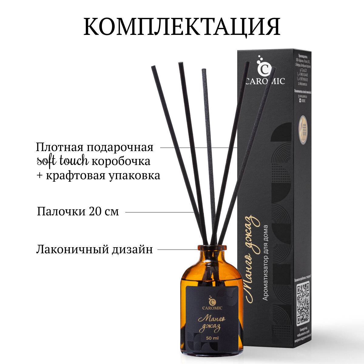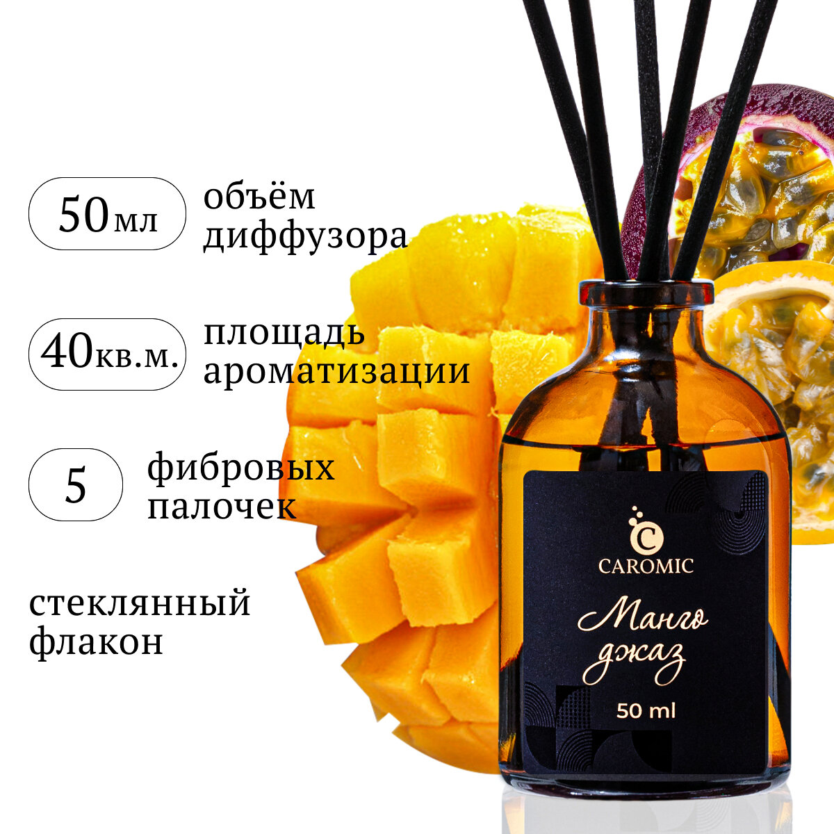 Купить Ароматический диффузор Манго Джаз Ароматизатор для дома и офиса с палочками CAROMIC 50 мл
