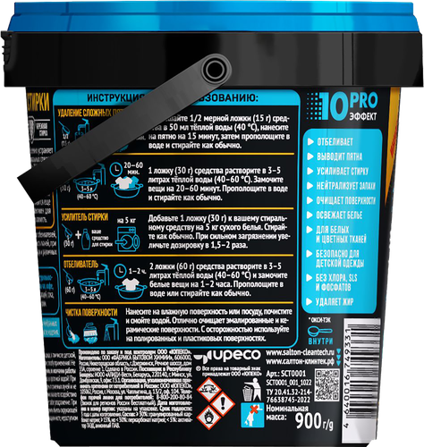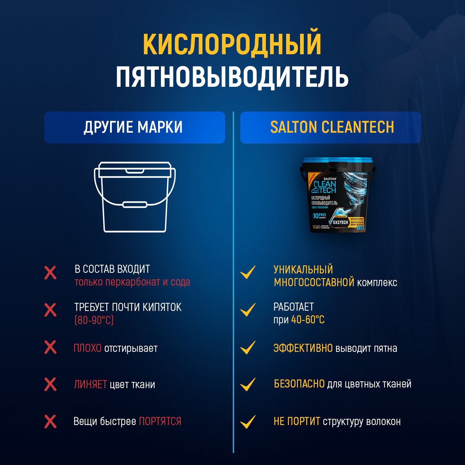 Универсальный Кислородный отбеливатель пятновыводитель Salton CleanTech 10 PRO эффект, 900 г х 1 шт.