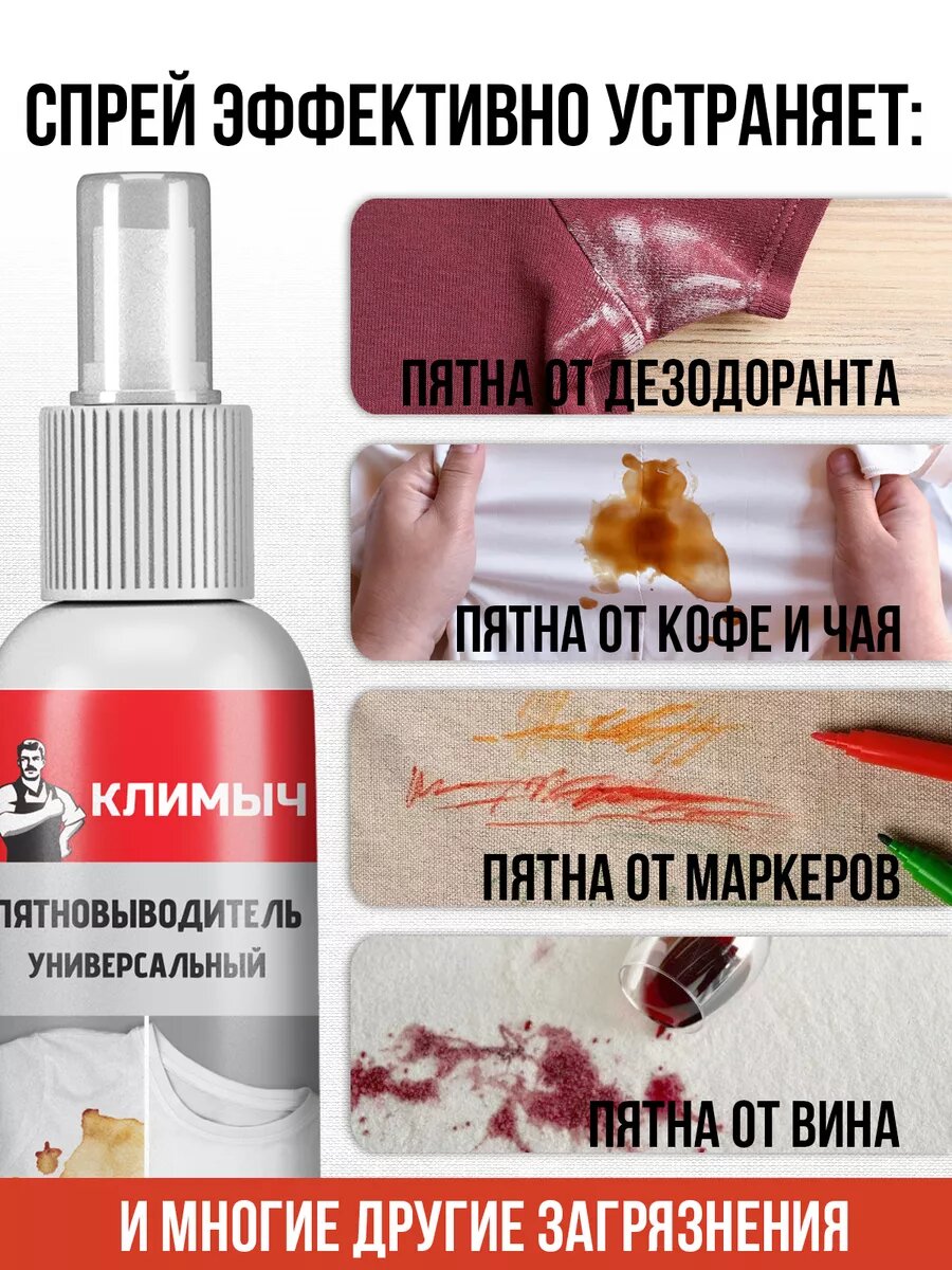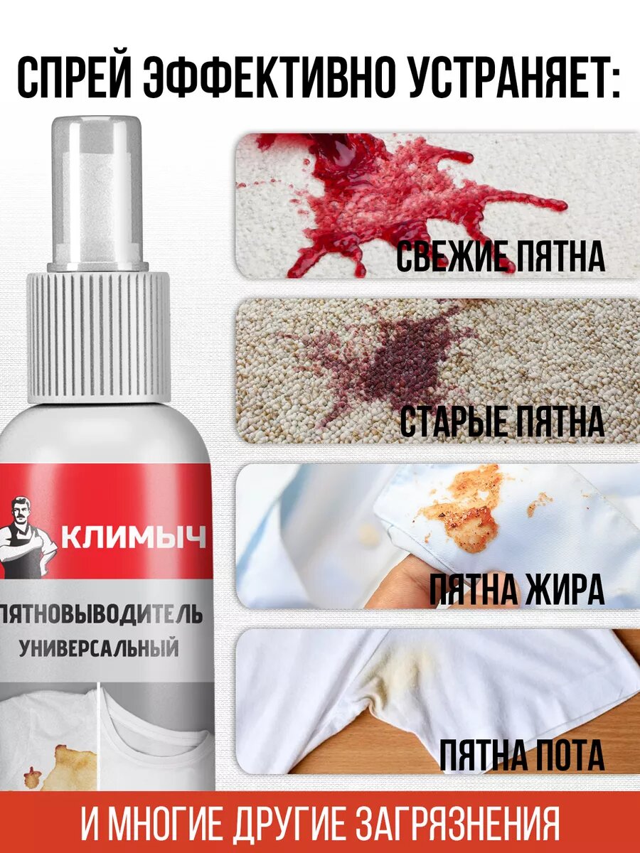 Пятновыводитель климыч, спрей, универсальный, 100мл интересное: