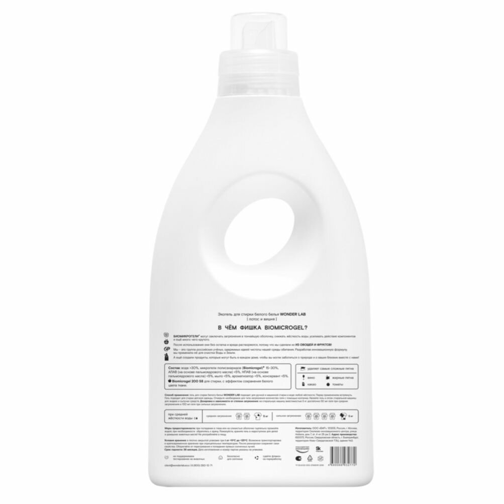 WonderLab Экогель для Стирки Белого белья (лотос и вишня) {20 стирок} 1 л