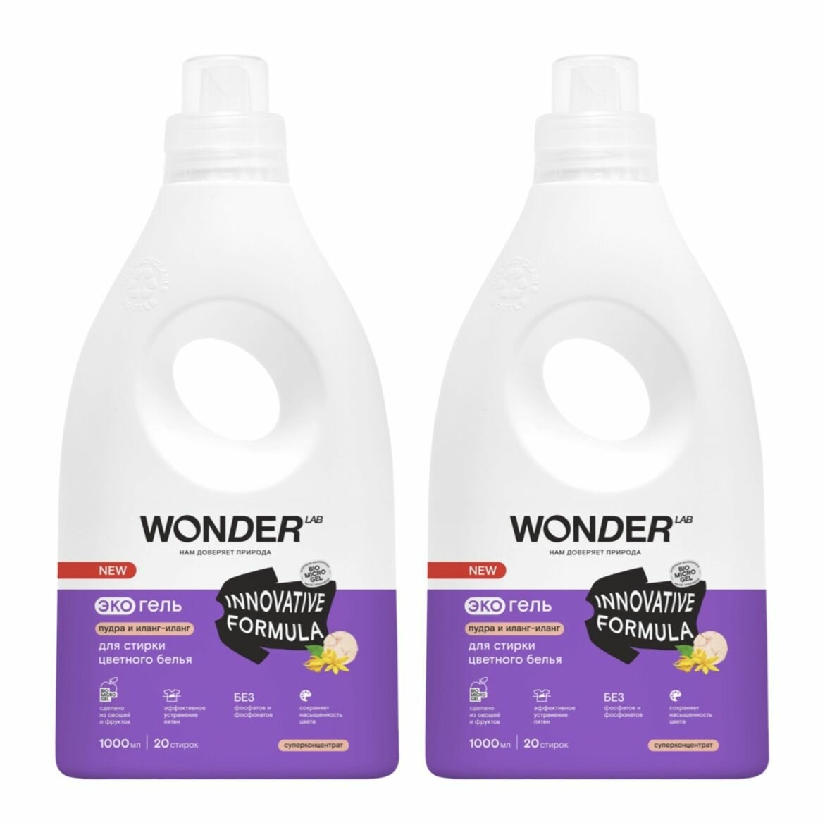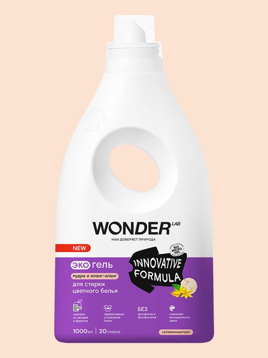 Купить WONDER LAB ЭкоГель для стирки цветного белья Пудра и Иланг-Иланг, 1л, 2 ШТ