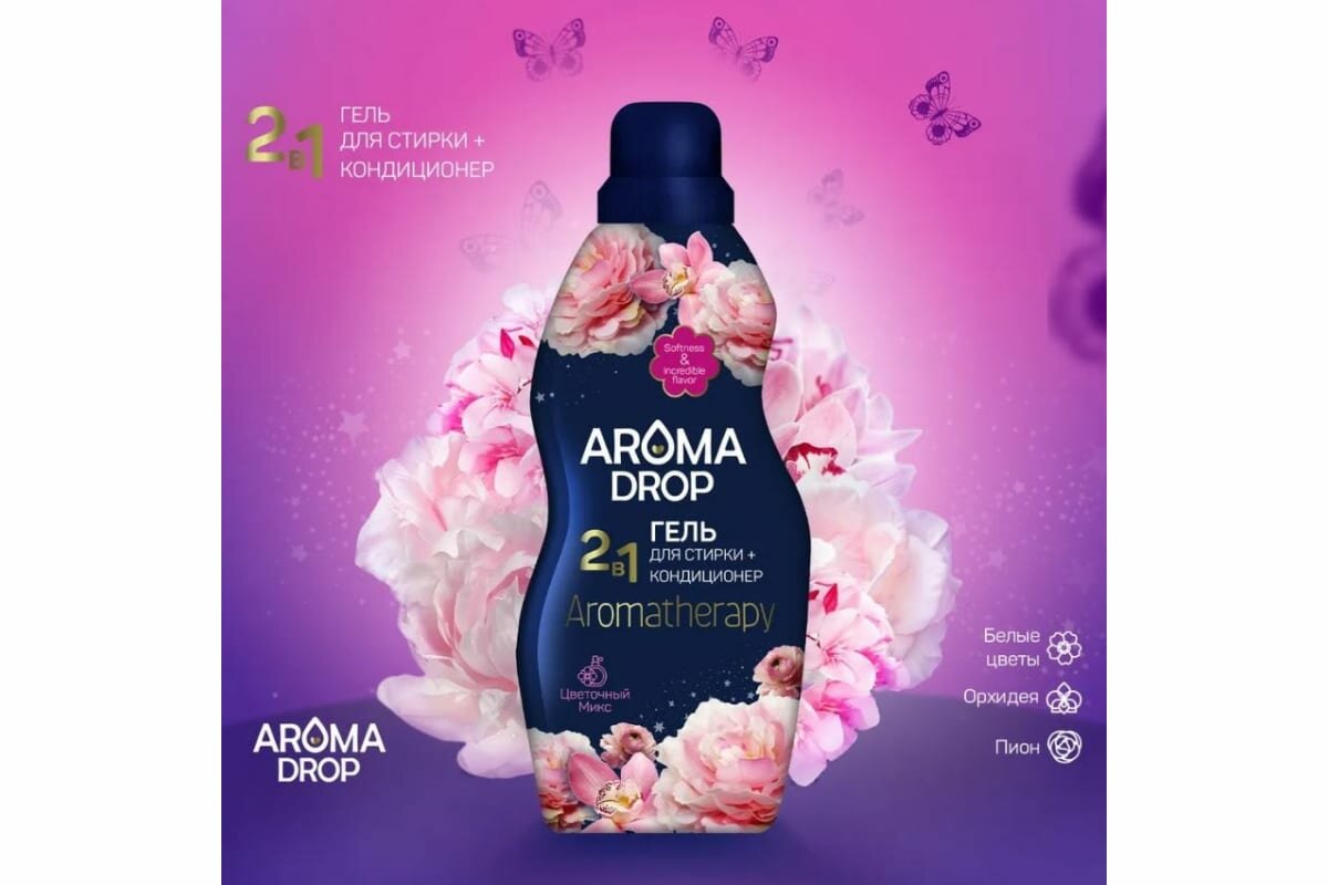 Гель для стирки Aroma Drop, 1 л, универсальный, Цветочный микс 2в1