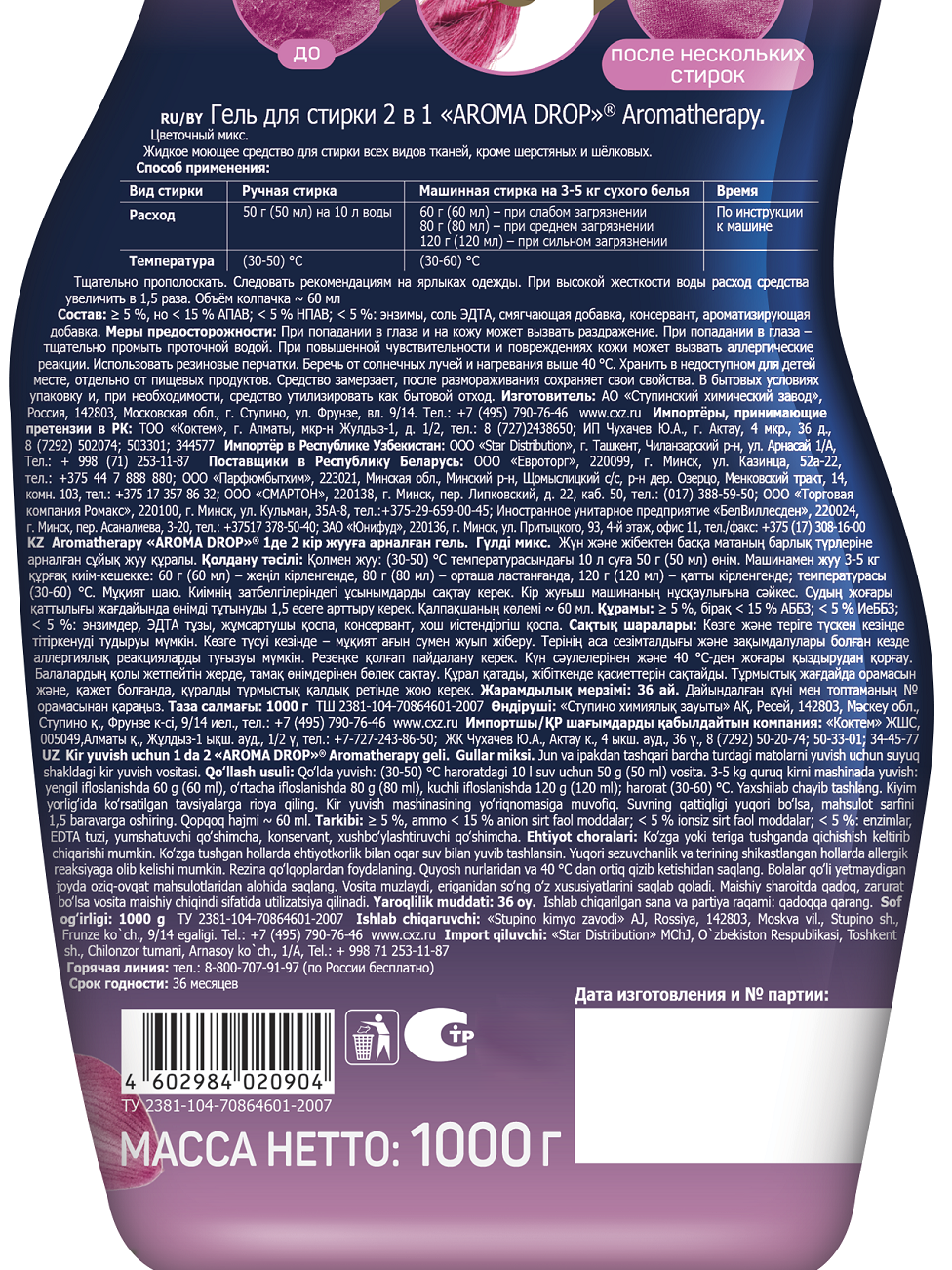 Aroma Drop Гель для стирки белья и кондиционер 2 в 1, 1 литр