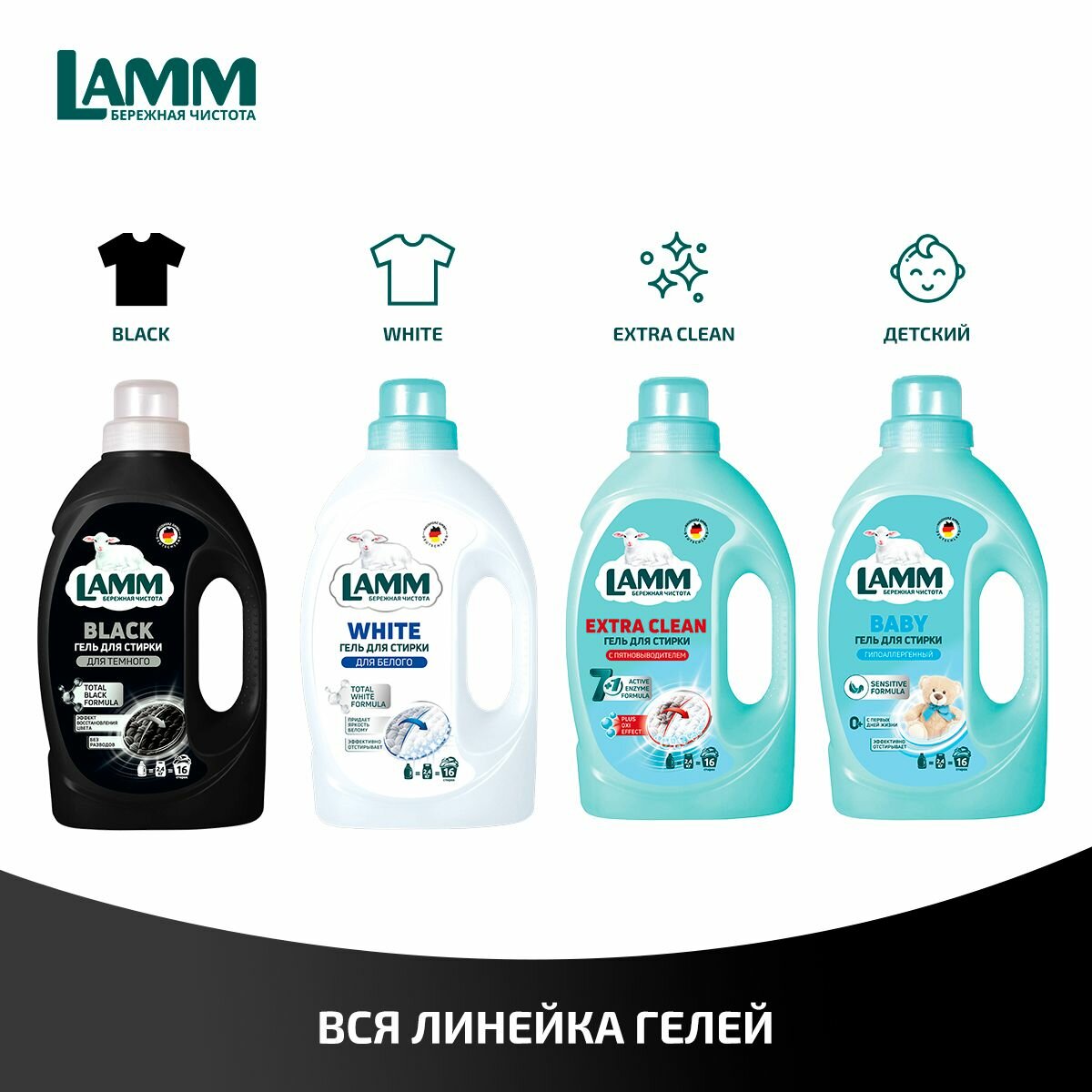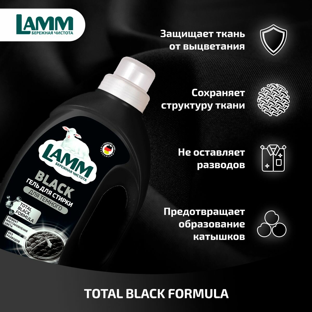 Купить LAMM Black Гель для Стирки Черного и Темного Белья, Бесфосфатный,16 стирок, 1,04 л
