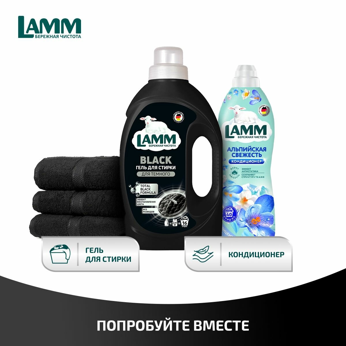 Набор для стирки LAMM "бережная чистота", гель и кондиционер, для цветного белья