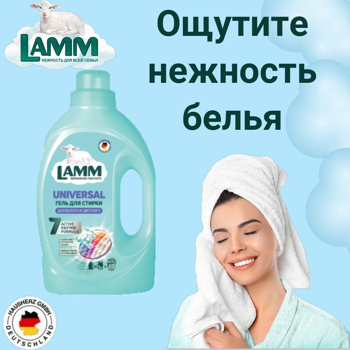 Гель для стирки Lamm "Universal", для белого и цветного белья, 1300 г