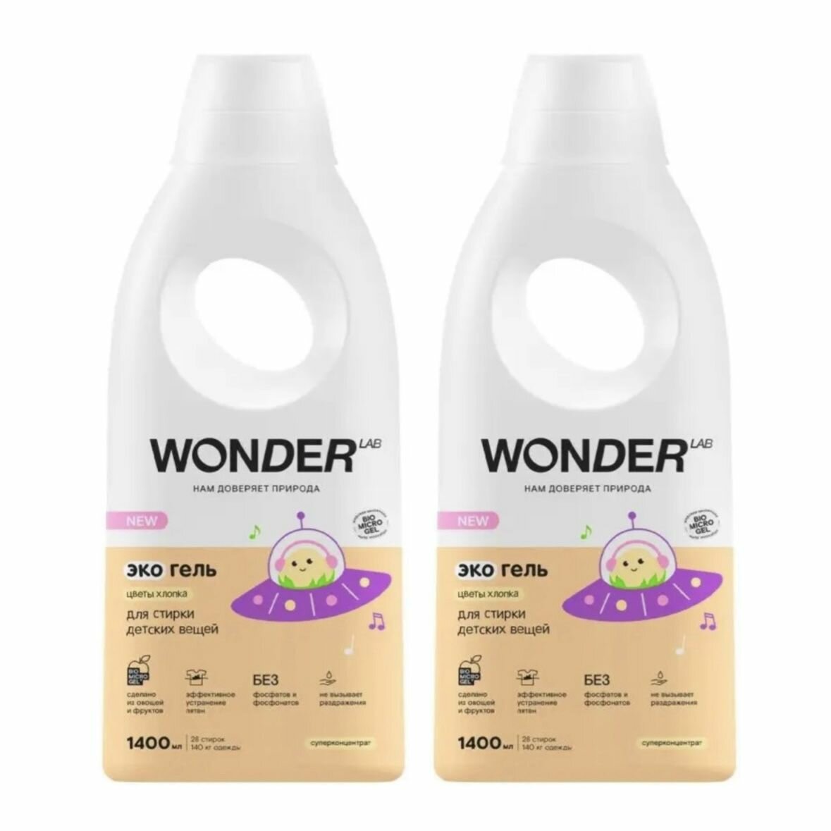 Купить WONDER LAB ЭкоГель для стирки детских вещей Цветы Хлопка, 1,4лЮ 2 ШТ