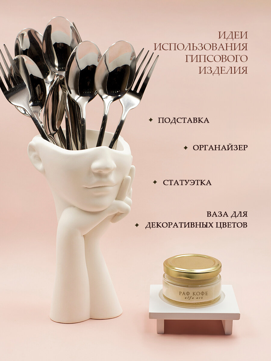 Ваза для цветов сухоцветов "Милота" из гипса, белая, настольная, 20х11х6 см, ALFA-ART