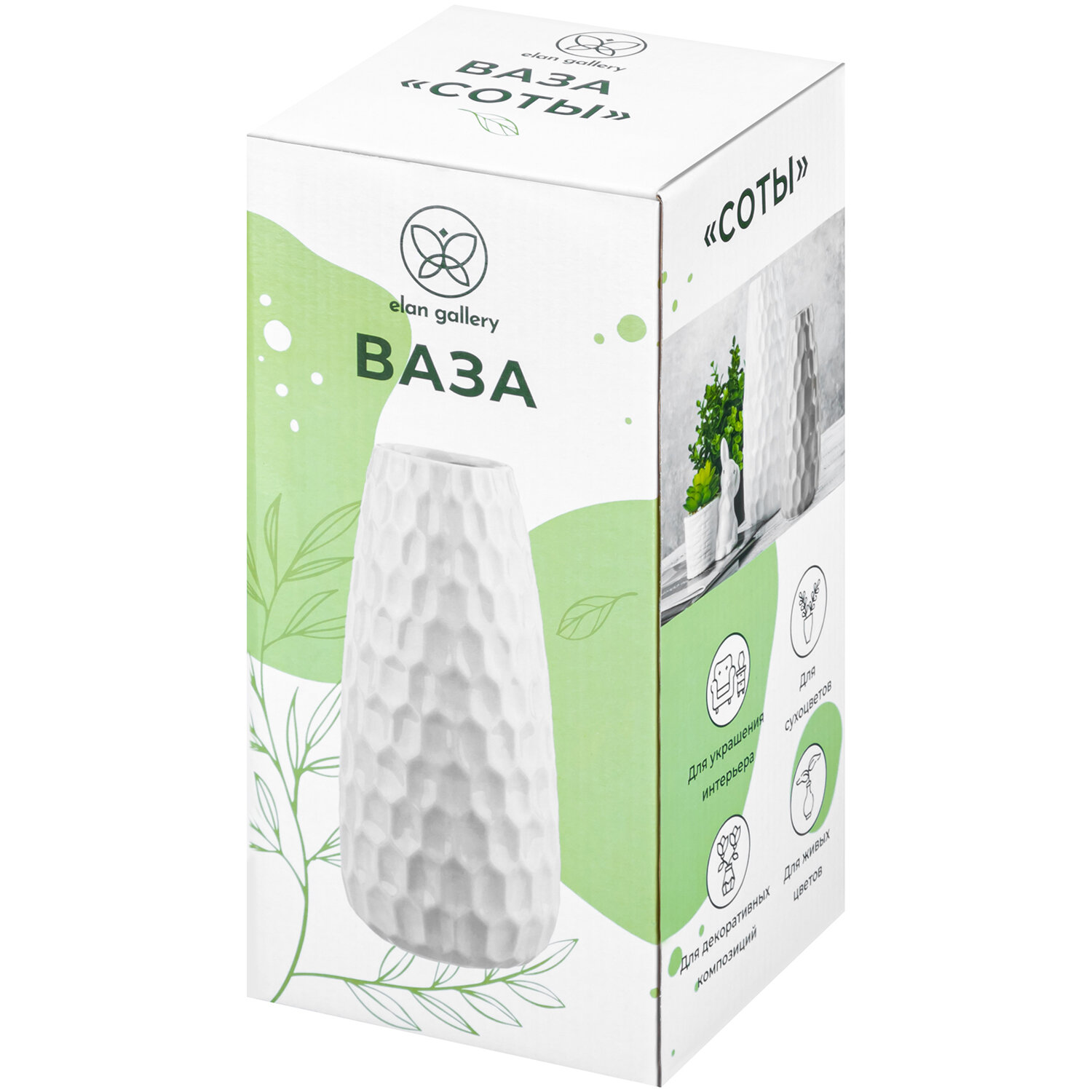 Ваза настольная интерьерная 12,5х12,5х28 см 2,5 л Elan Gallery Соты латте интересное: