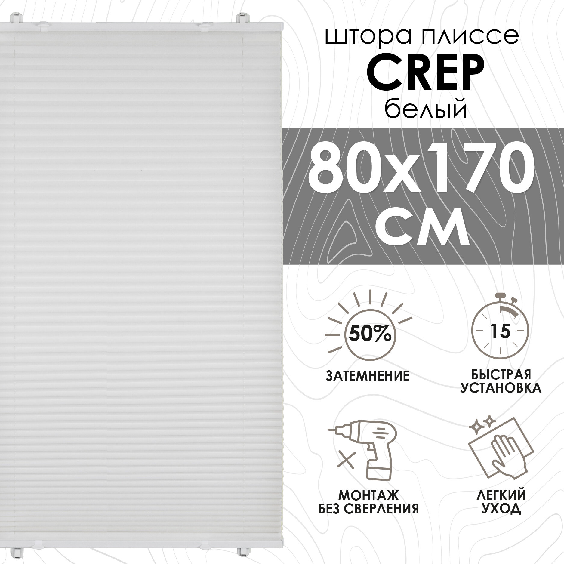 Плиссе натяжного типа;Crepe; 80х170