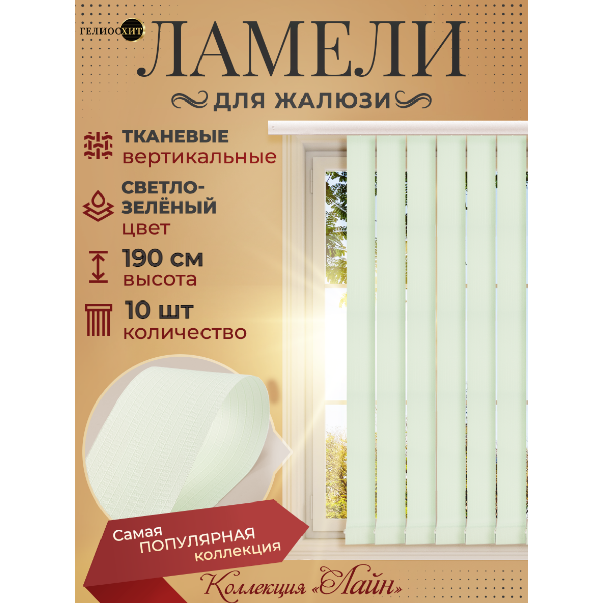 Купить Ламели для вертикальных жалюзи 10 шт высотой 190 см светло-зеленого цвета (карниз приобретается отдельно), гелиосхит.
