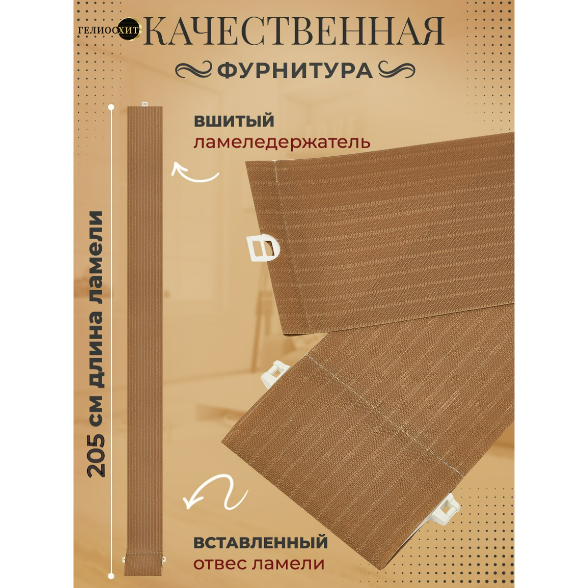 Ламели для вертикальных жалюзи 10 шт высотой 205 см темно-бежевого цвета, карниз приобретается отдельно, гелиосхит.