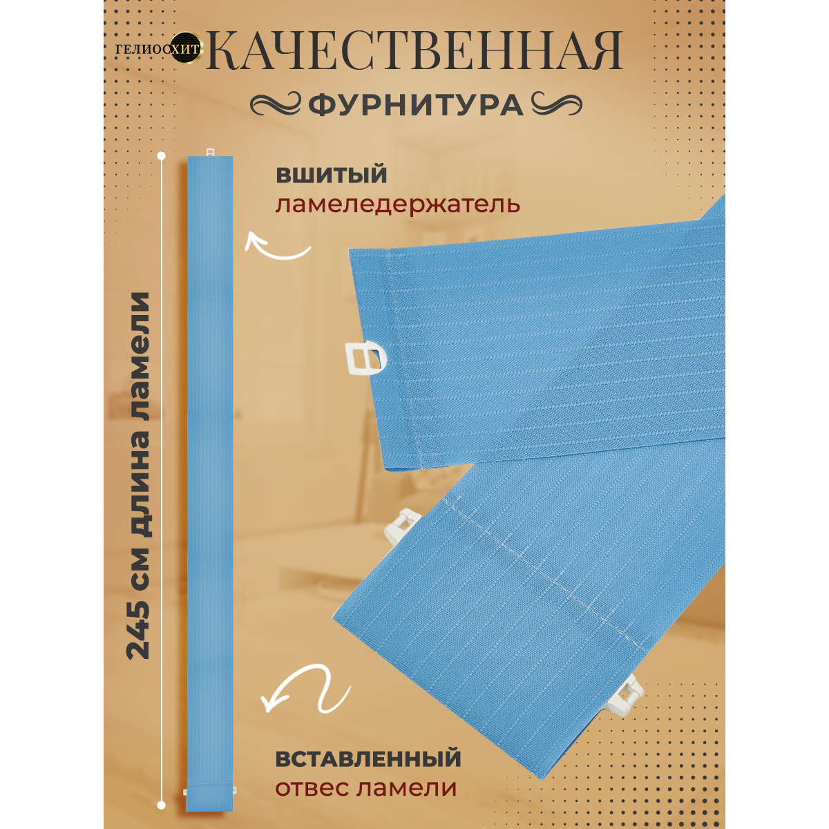 СохранитьЛамели для вертикальных жалюзи 25 шт высотой 245 см синего цвета (карниз приобретается отдельно), гелиосхит. интересное: