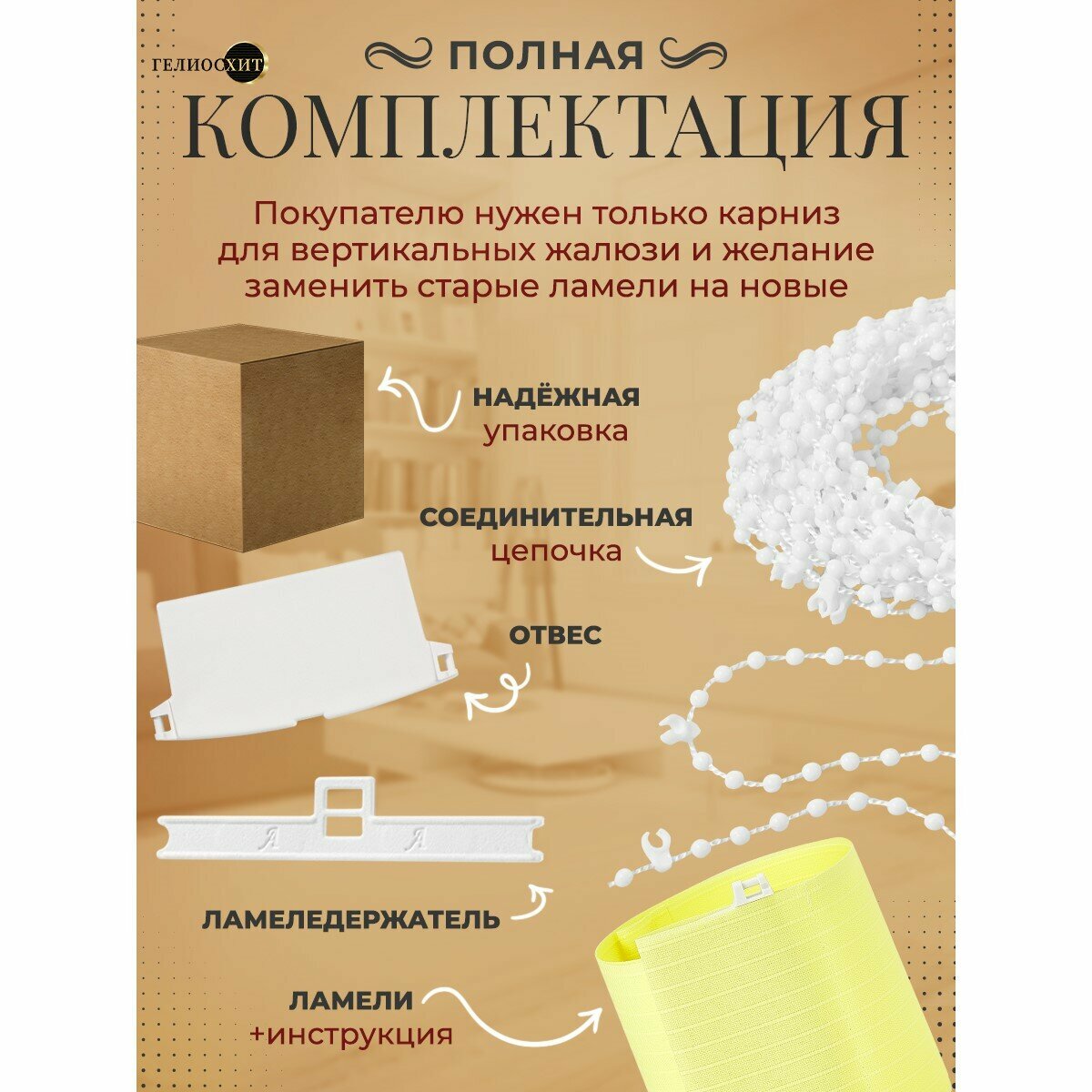 Ламели для вертикальных жалюзи 25 шт высотой 215 см темно-бежевого цвета, карниз приобретается отдельно, гелиосхит.