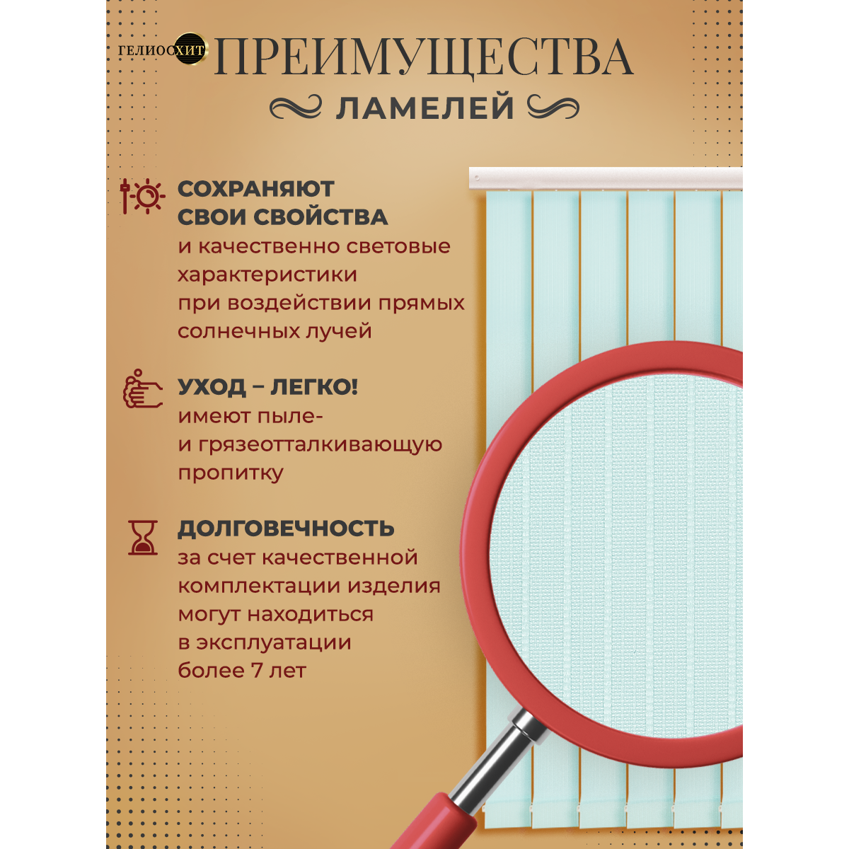Ламели для вертикальных жалюзи 30 шт высотой 170 см темно-бежевого цвета, карниз приобретается отдельно, гелиосхит.