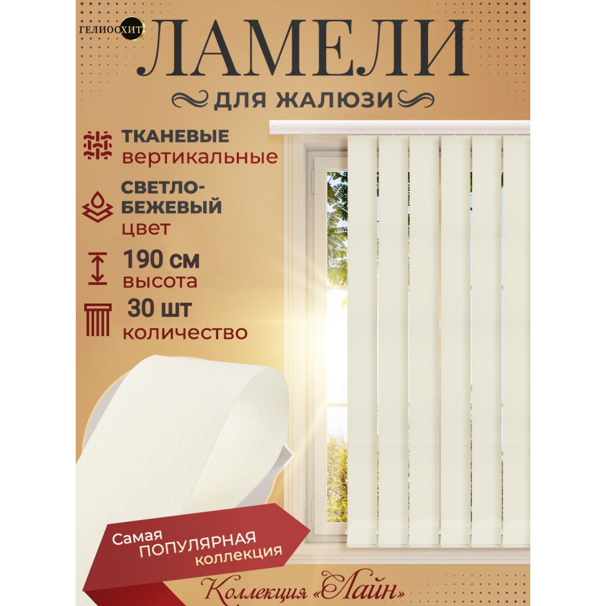 Купить Ламели для вертикальных жалюзи 30 шт высотой 190 см светло-бежевого цвета (карниз приобретается отдельно), гелиосхит.