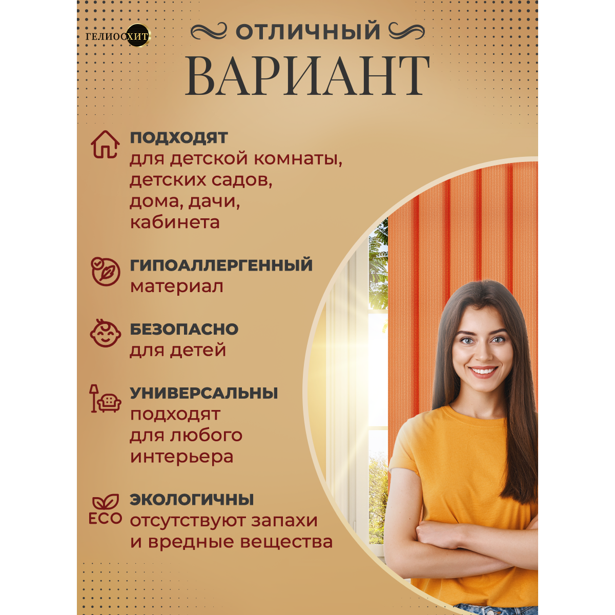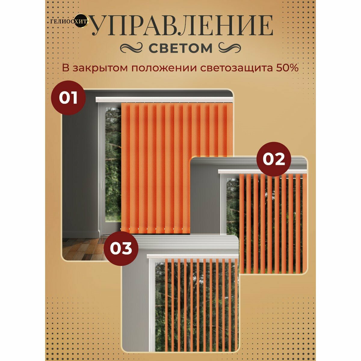 СохранитьЛамели для вертикальных жалюзи 15 шт высотой 205 см терракотового цвета (карниз приобретается отдельно), гелиосхит. интересное: